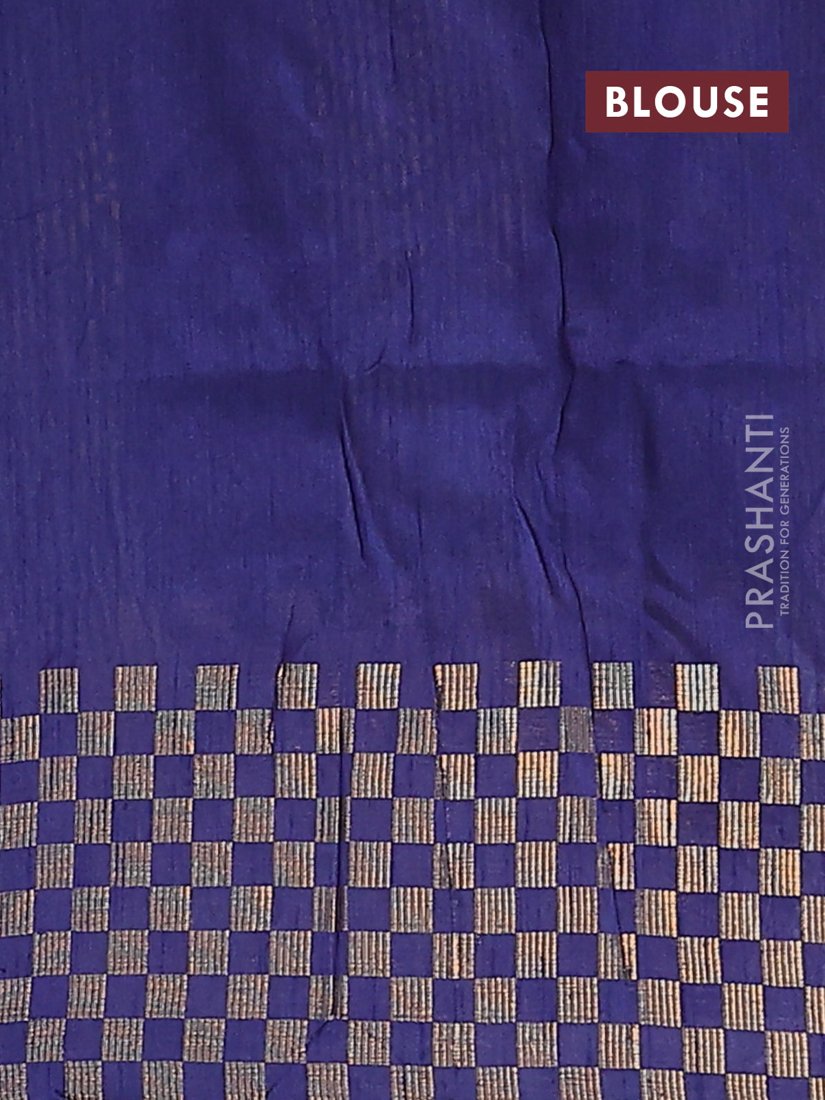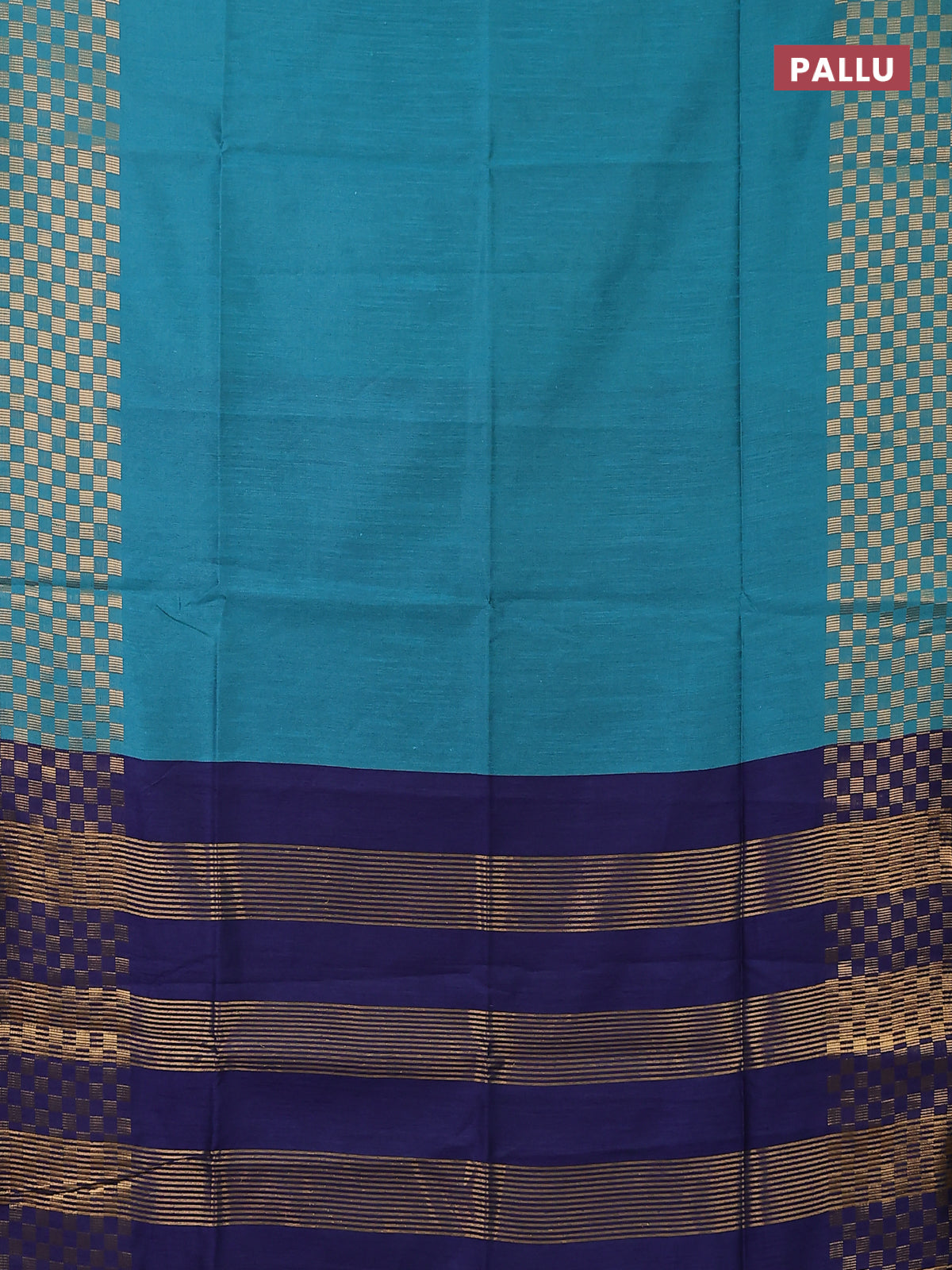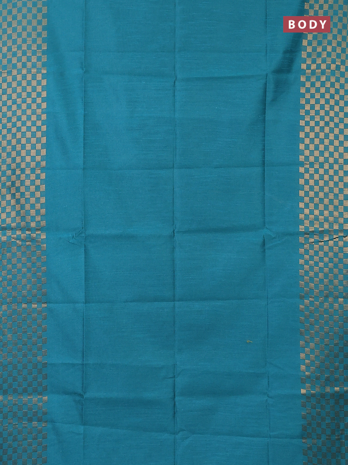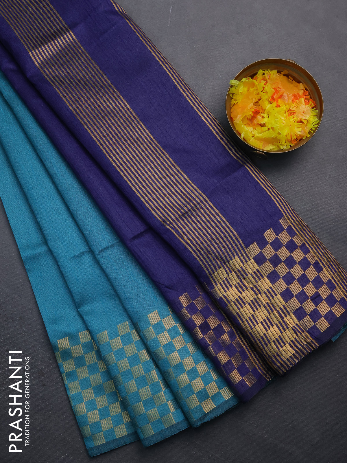 Semi dupion saree teal blue and blue with plain body and zari woven checked border