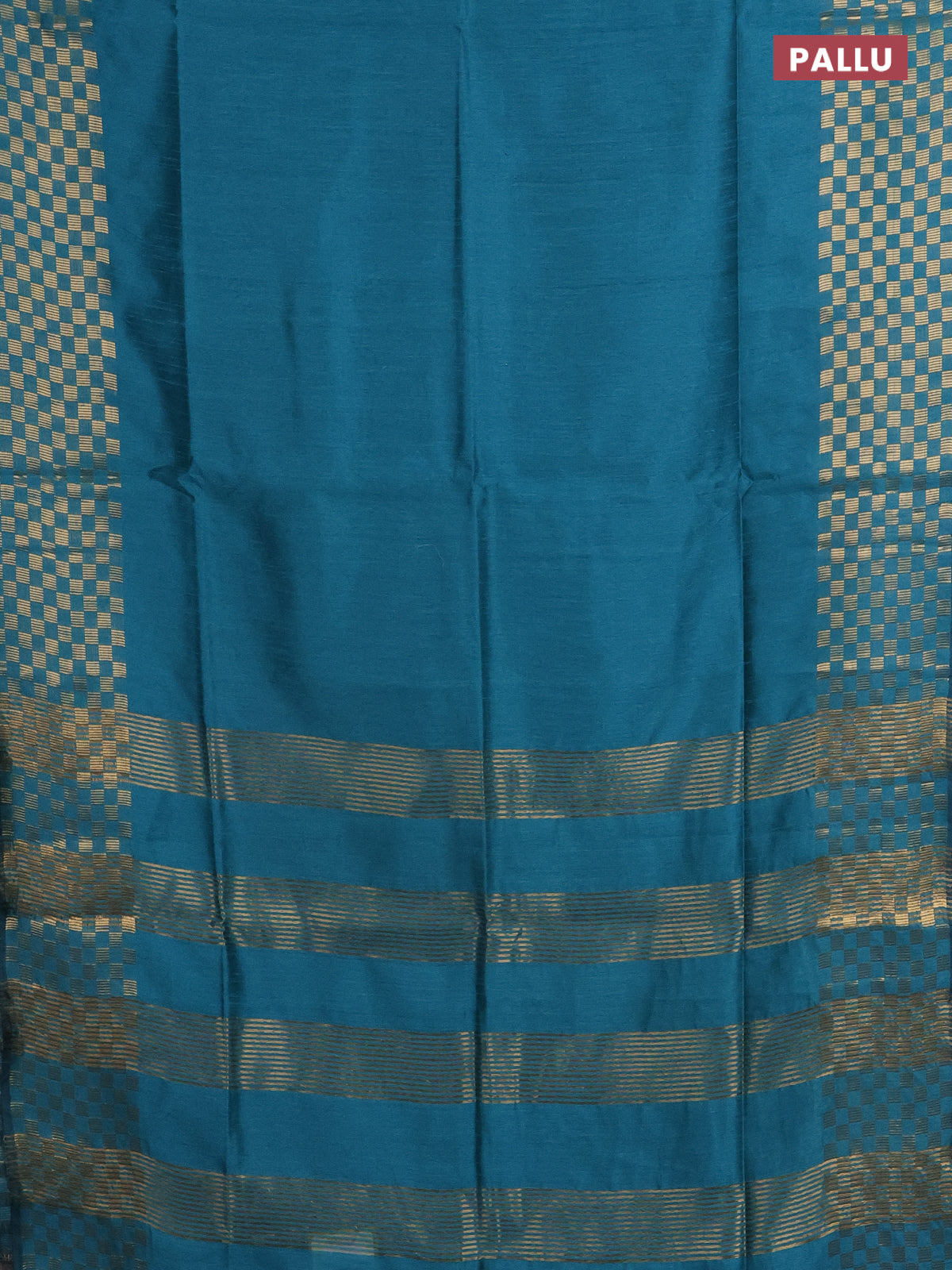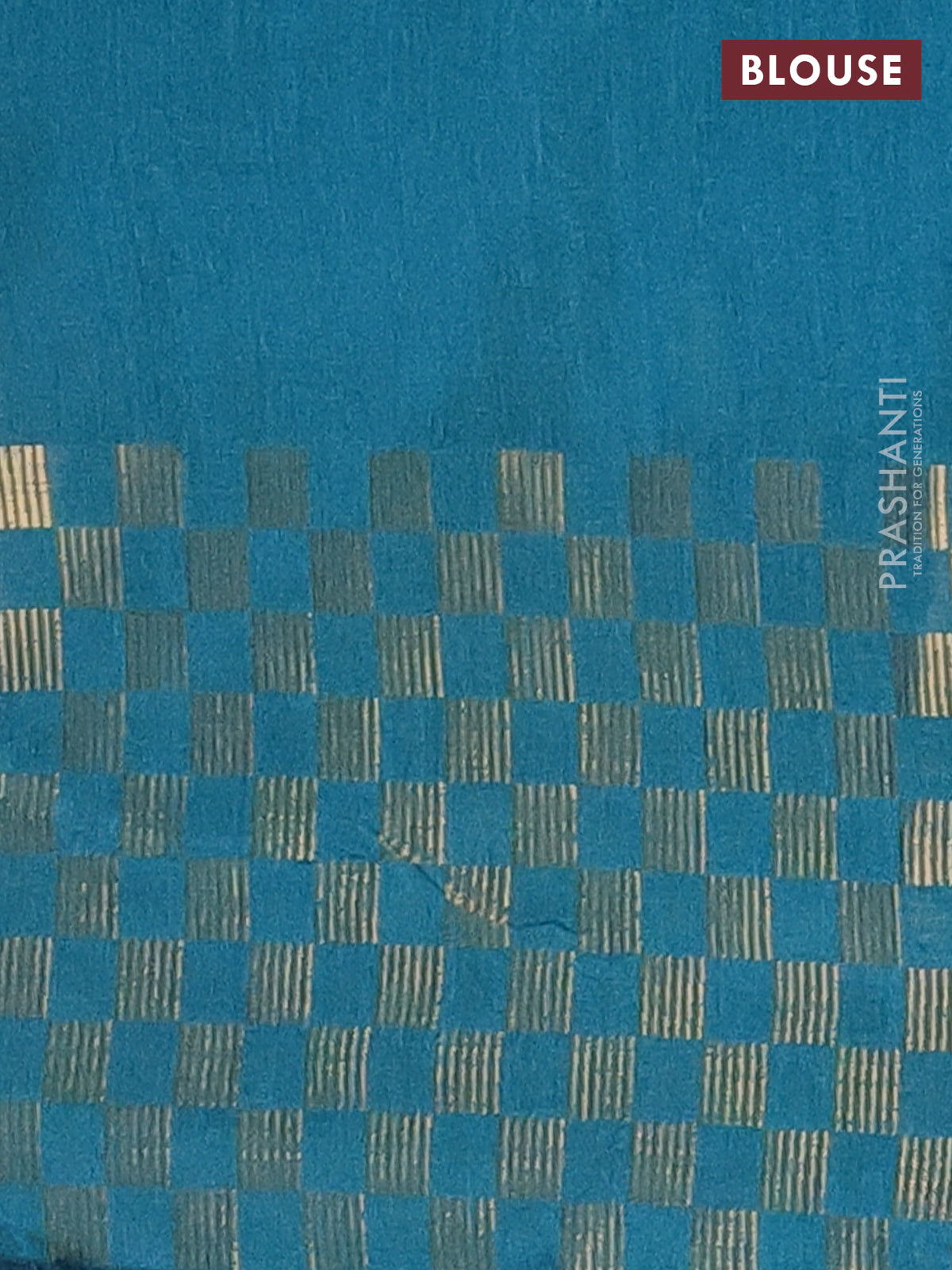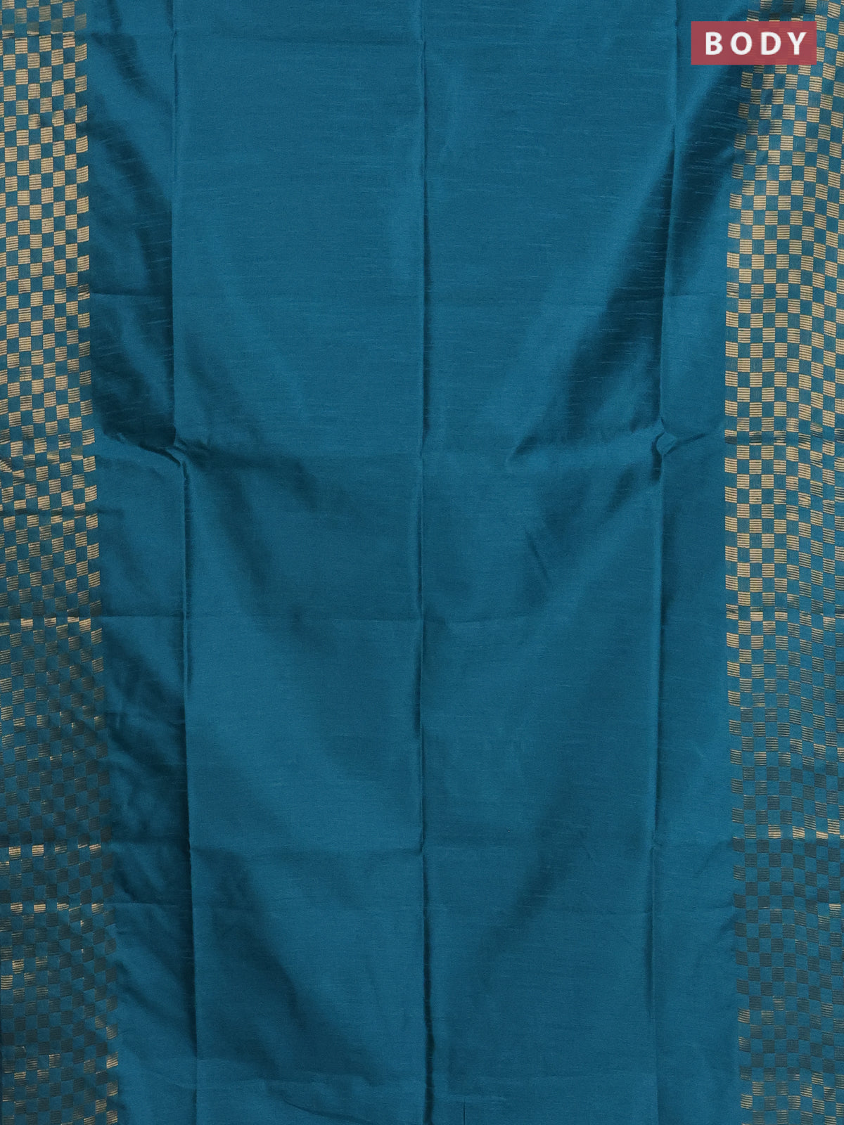 Semi dupion saree teal blue with plain body and zari woven checked border