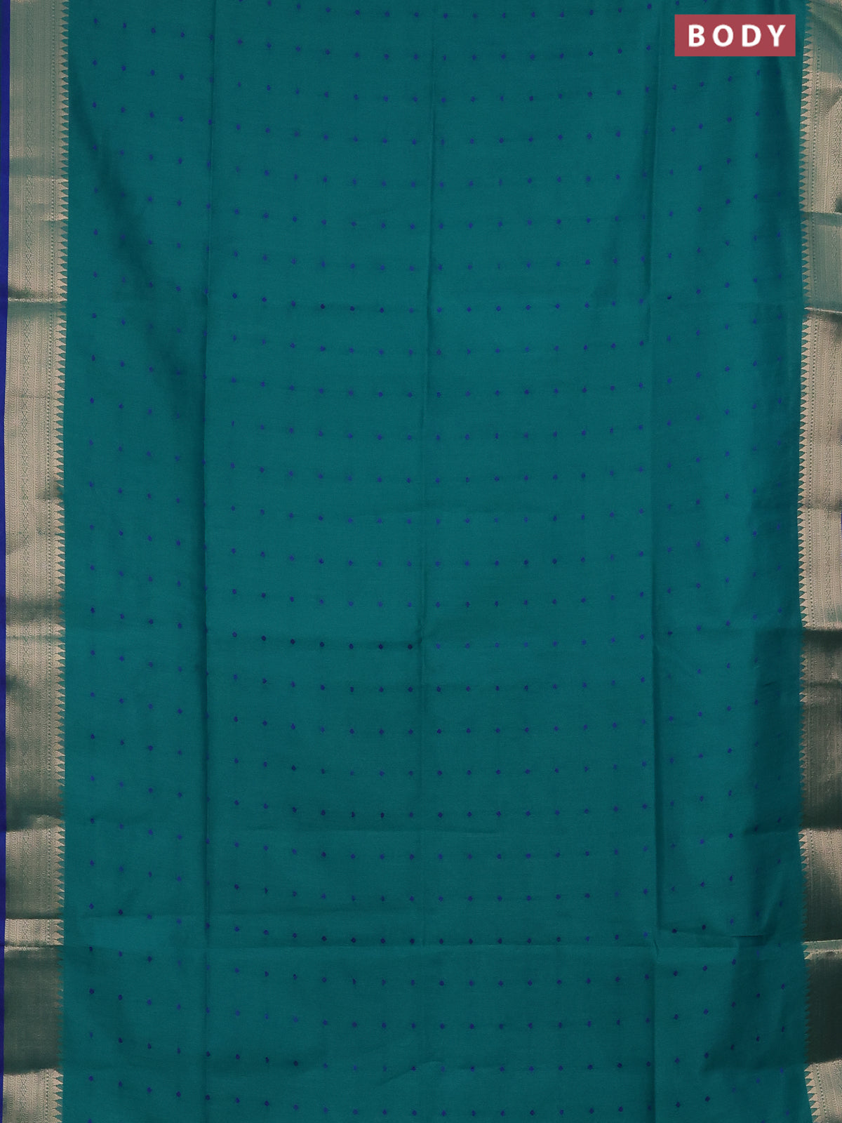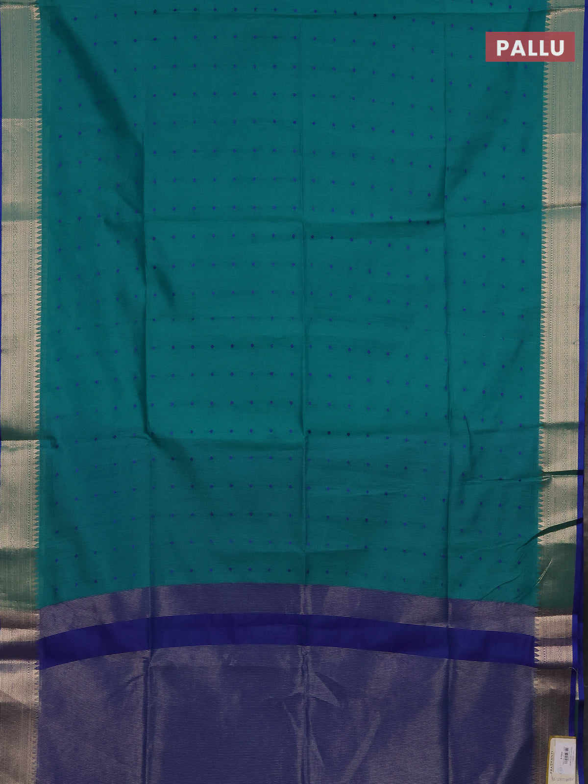 Semi dupion saree teal green and blue with allover thread woven buttas and zari woven border