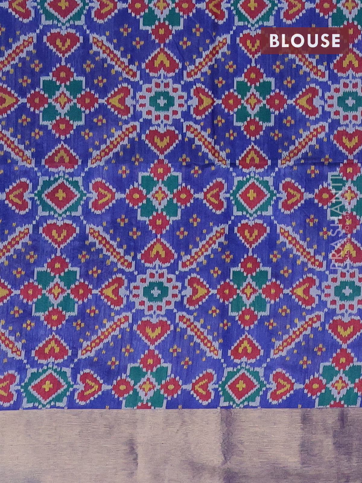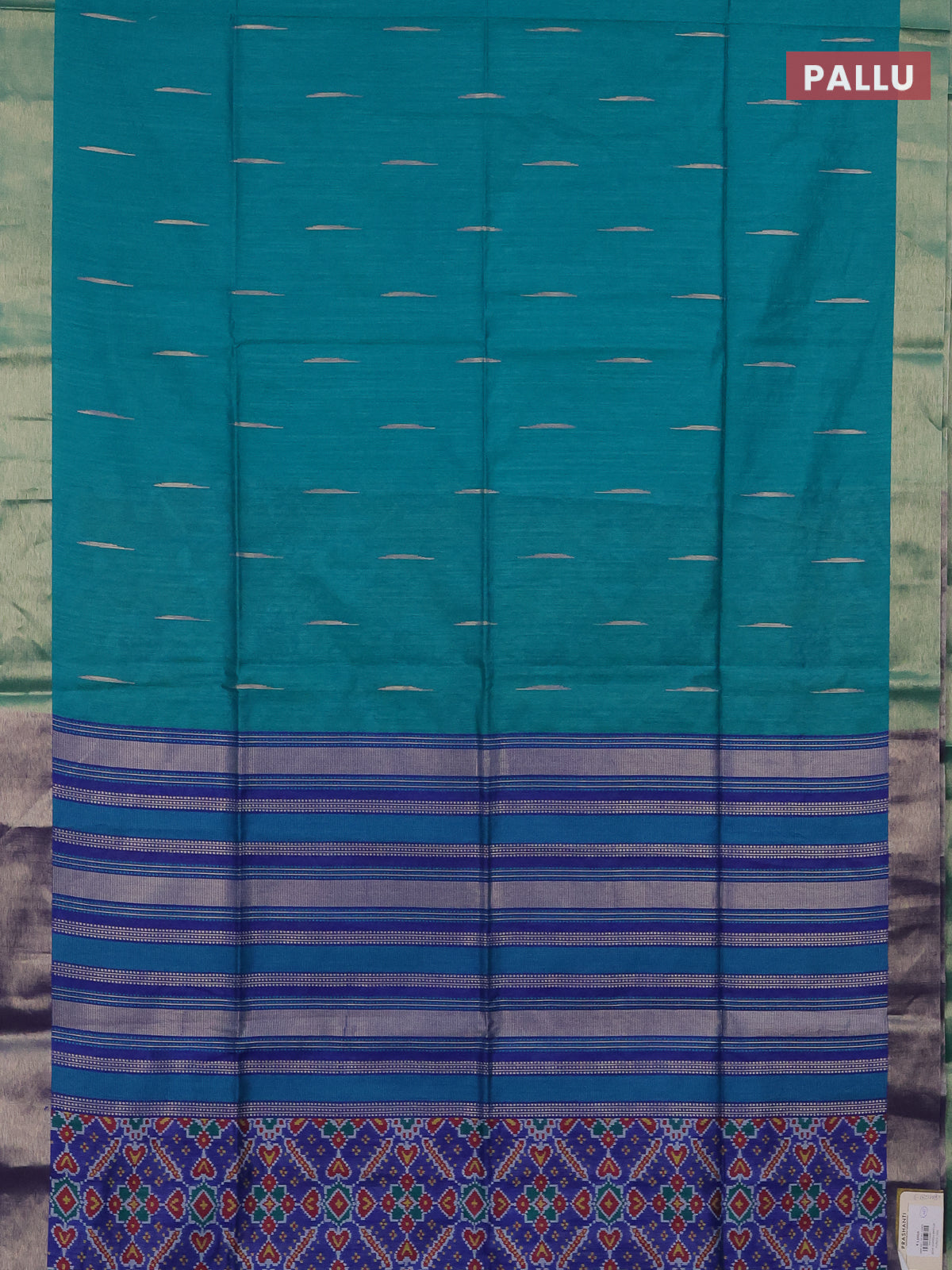 Semi dupion saree teal green shade and blue with zari woven buttas and ikat woven pallu