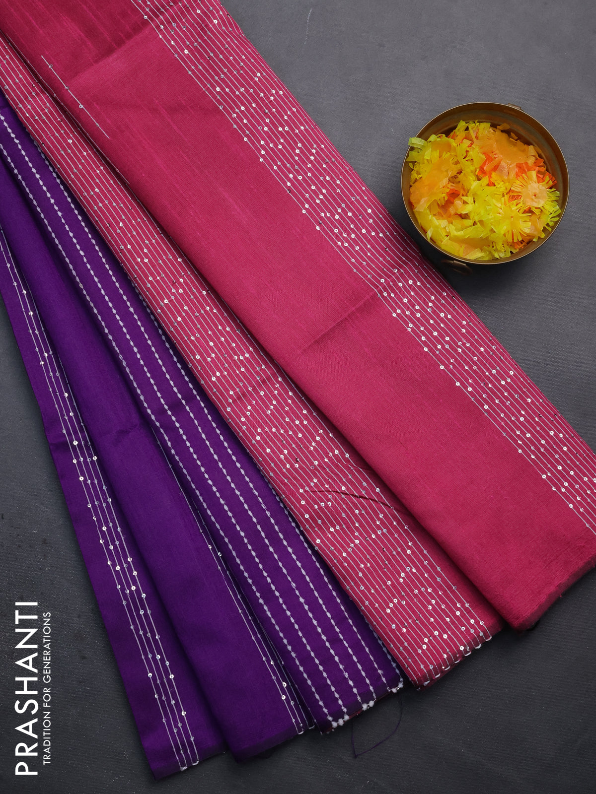 Semi dupion saree violet and pink with allover thread & sequin weaves and sequin work pallu