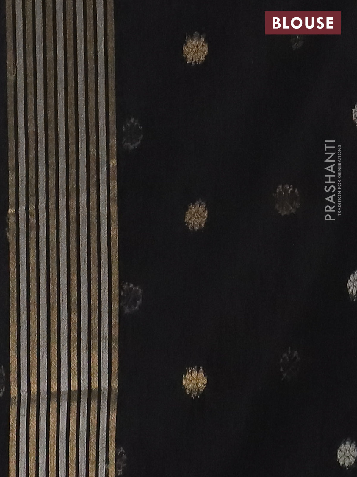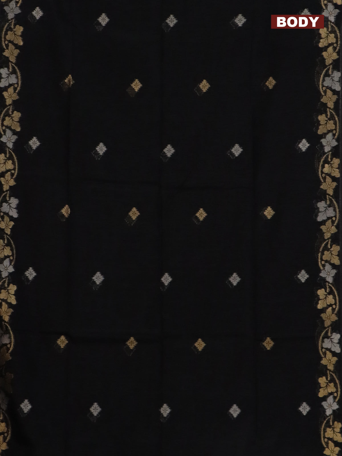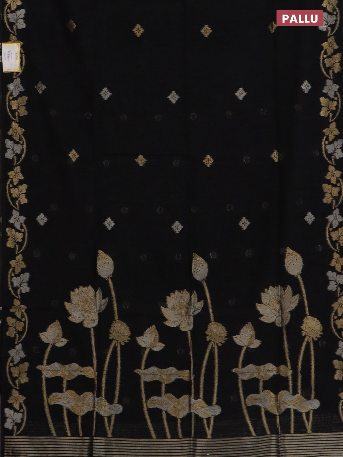 Semi jute linen saree black with silver & gold zari woven buttas and zari woven border