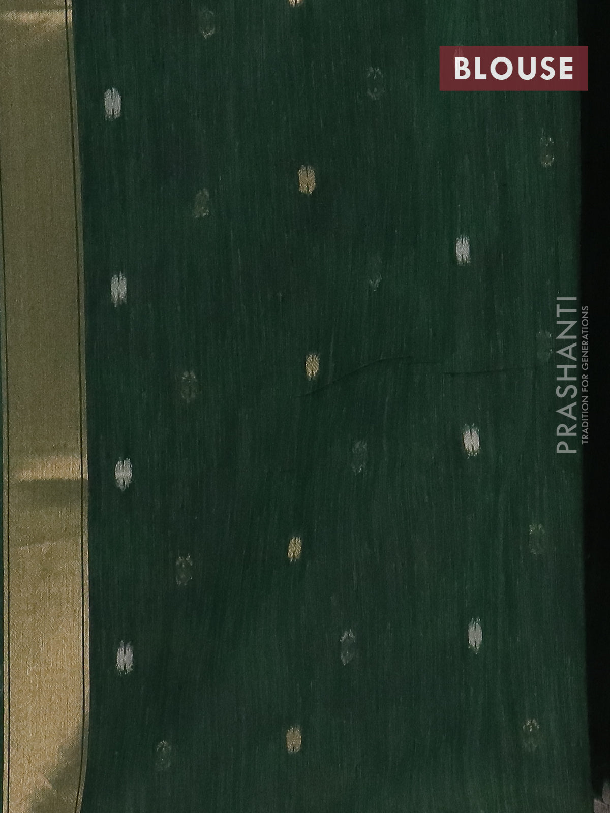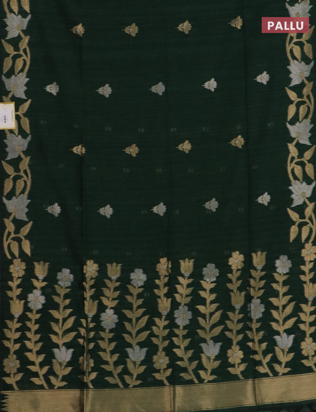 Semi jute linen saree bottle green with zari woven floral buttas and zari woven border