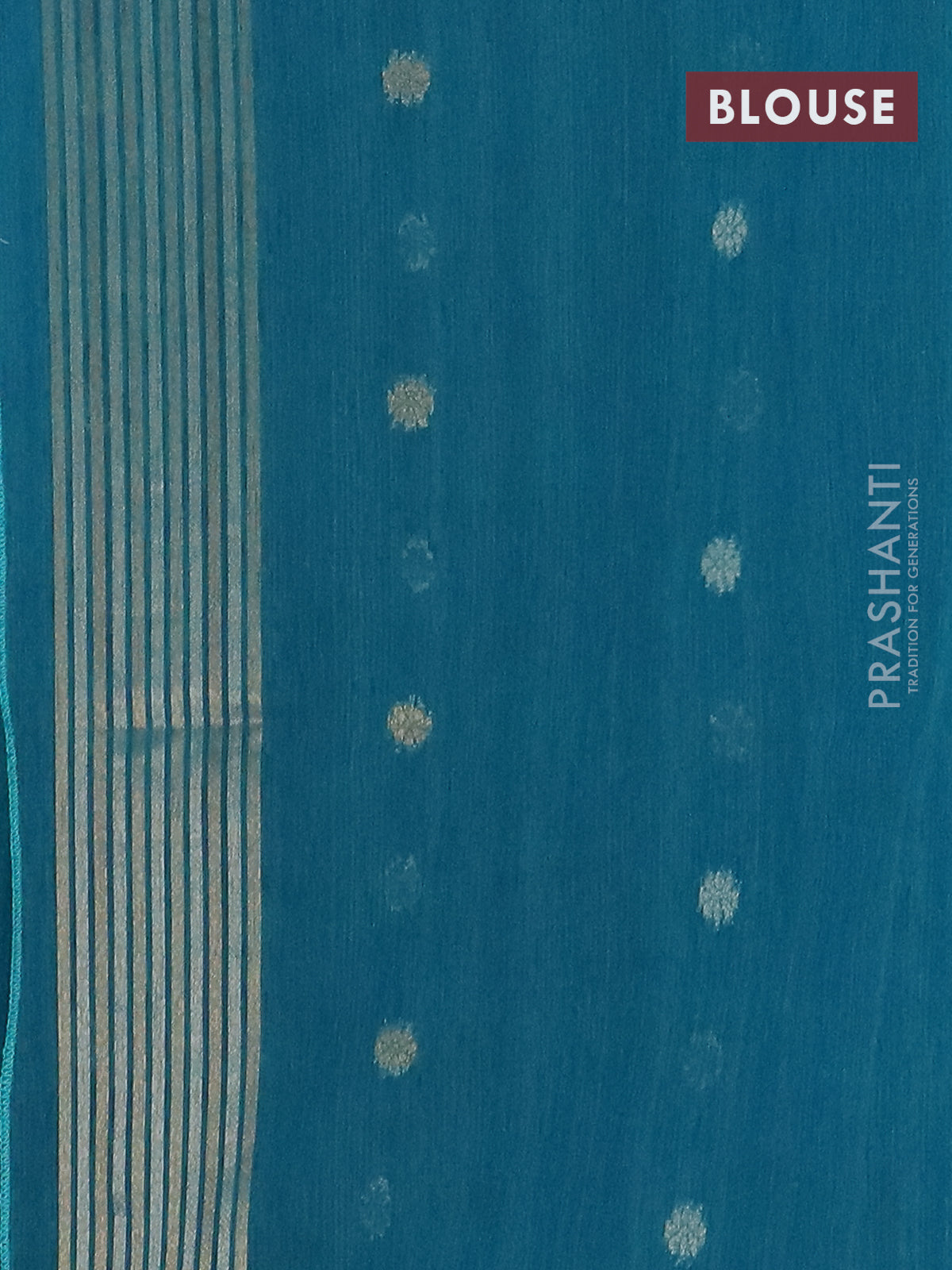 Semi jute linen saree peacock blue with silver & gold zari woven buttas and zari woven border