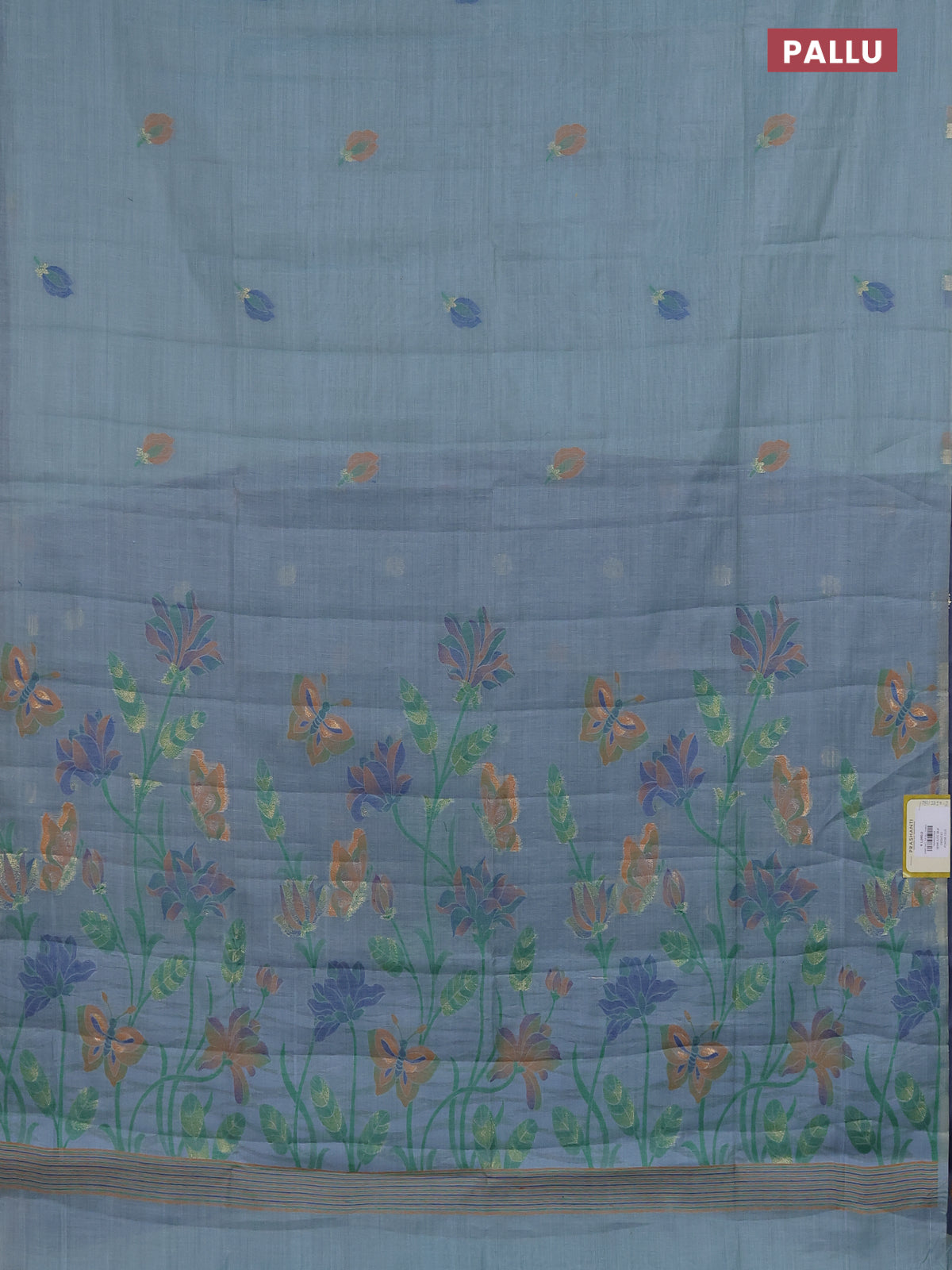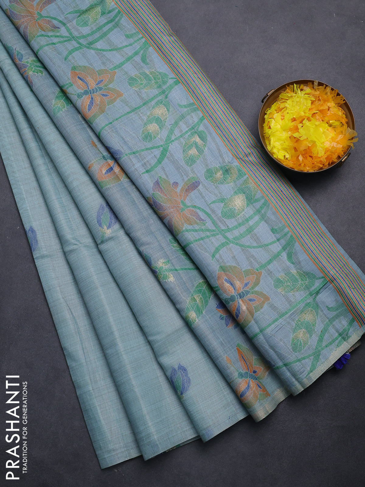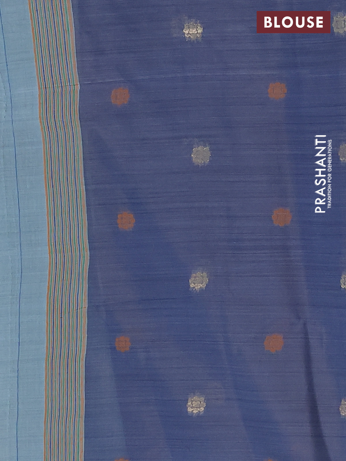 Semi jute silk saree pastel blue and blue with thread woven buttas and thread woven pallu