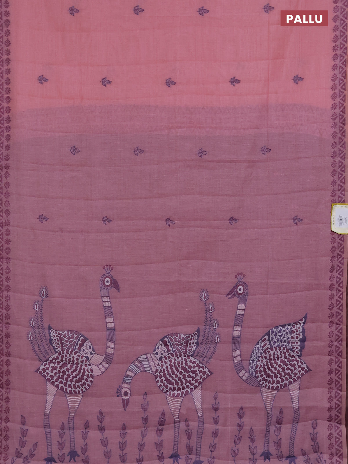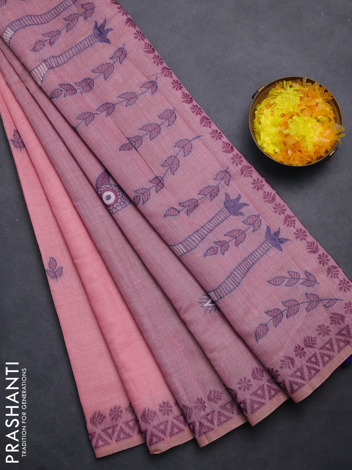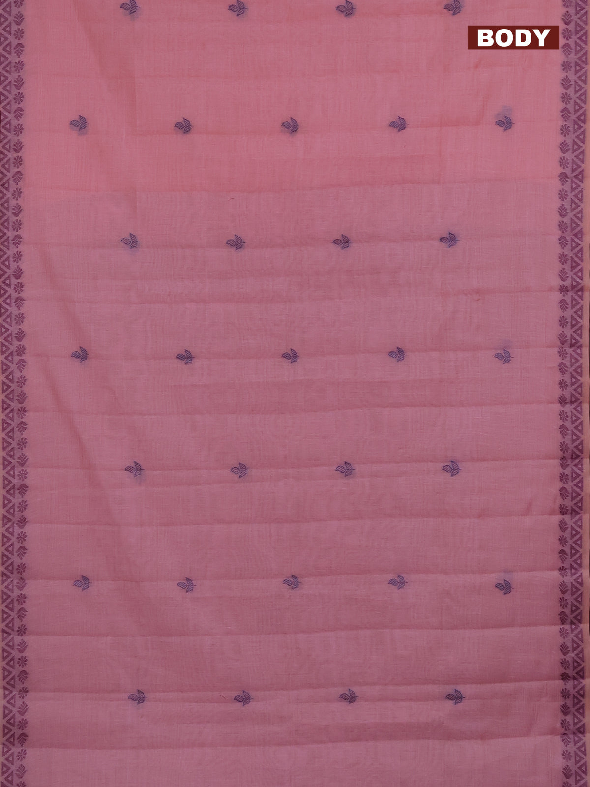 Semi jute silk saree pastel pink and wine shade with thread woven buttas and thread woven pallu