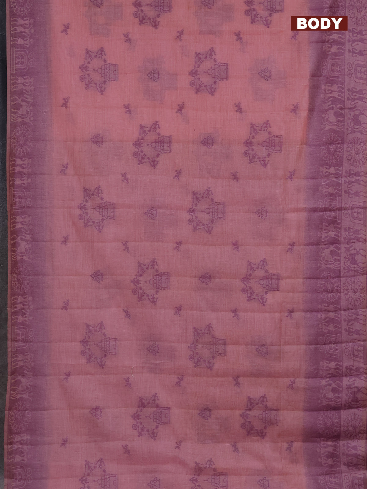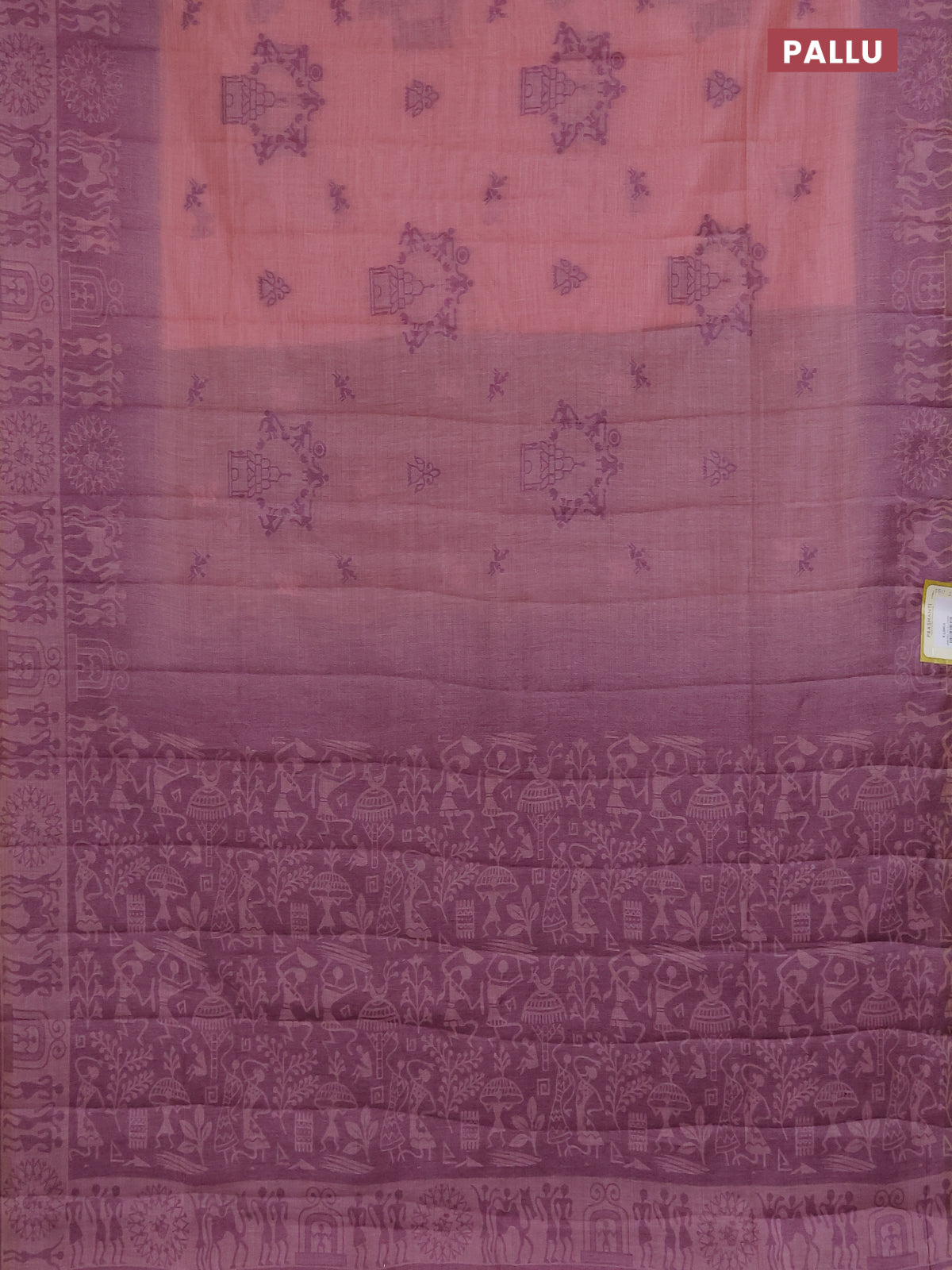 Semi jute silk saree peach pink and wine shade with thread woven buttas and thread woven pallu