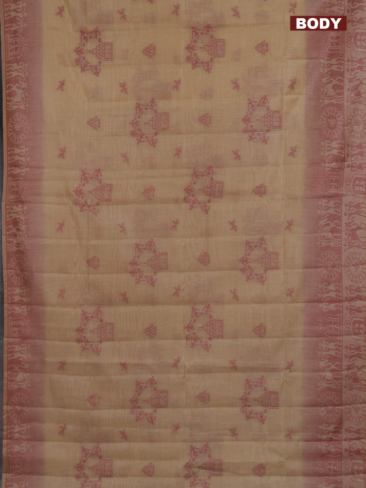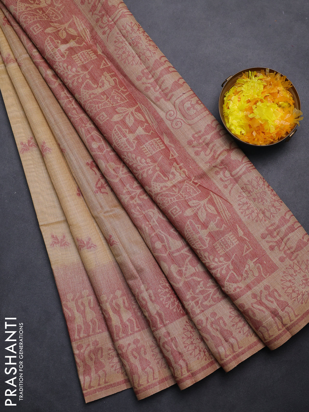 Semi jute silk saree sandal and maroon with thread woven buttas and thread woven pallu