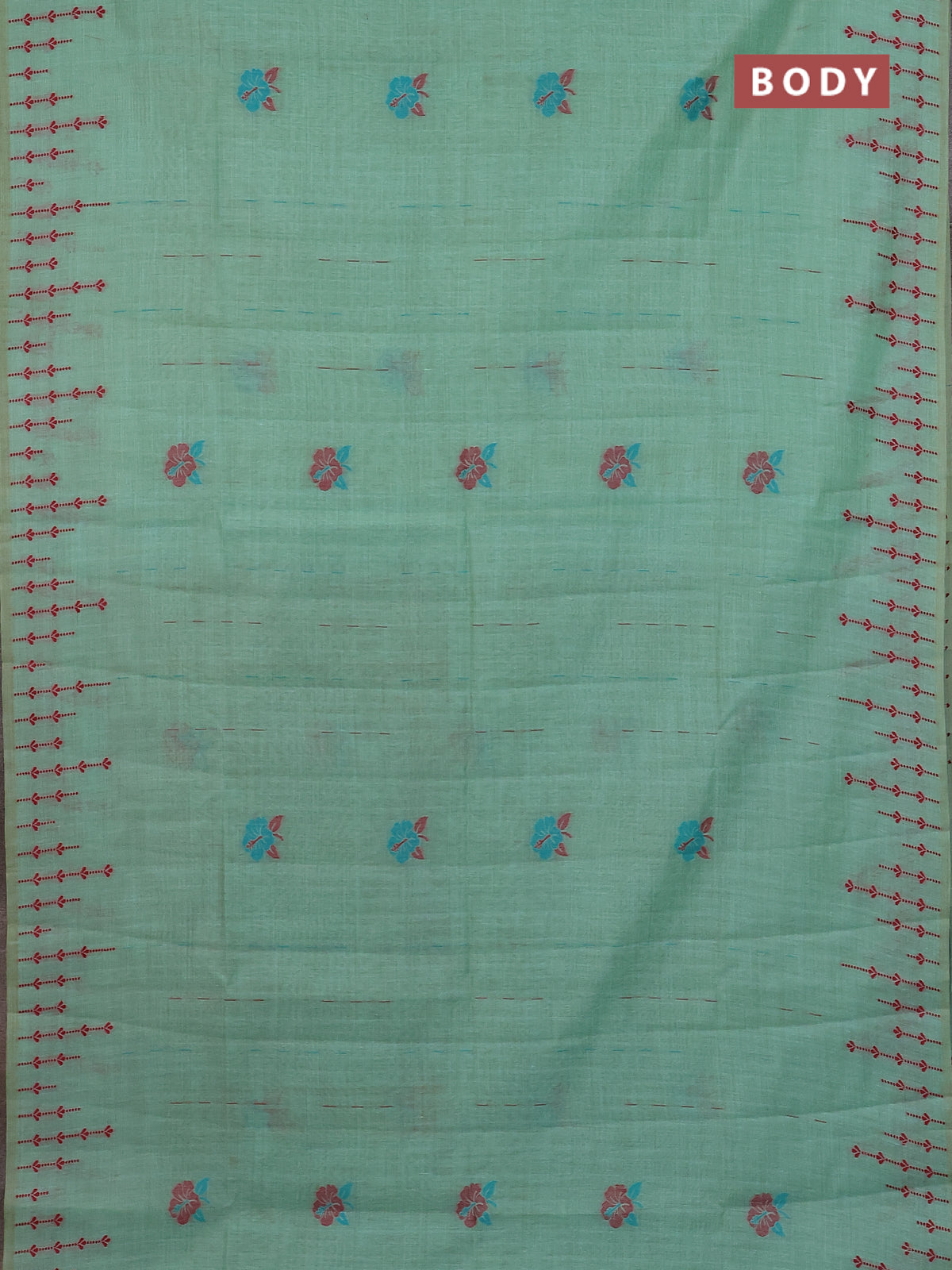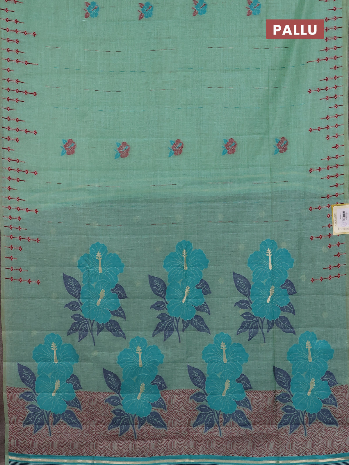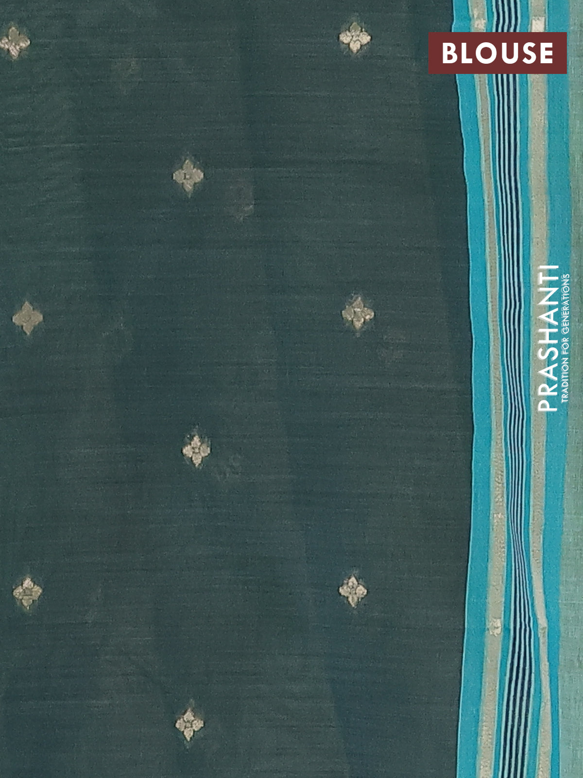 Semi jute silk saree teal green and green with thread woven buttas and floral design weaving pallu