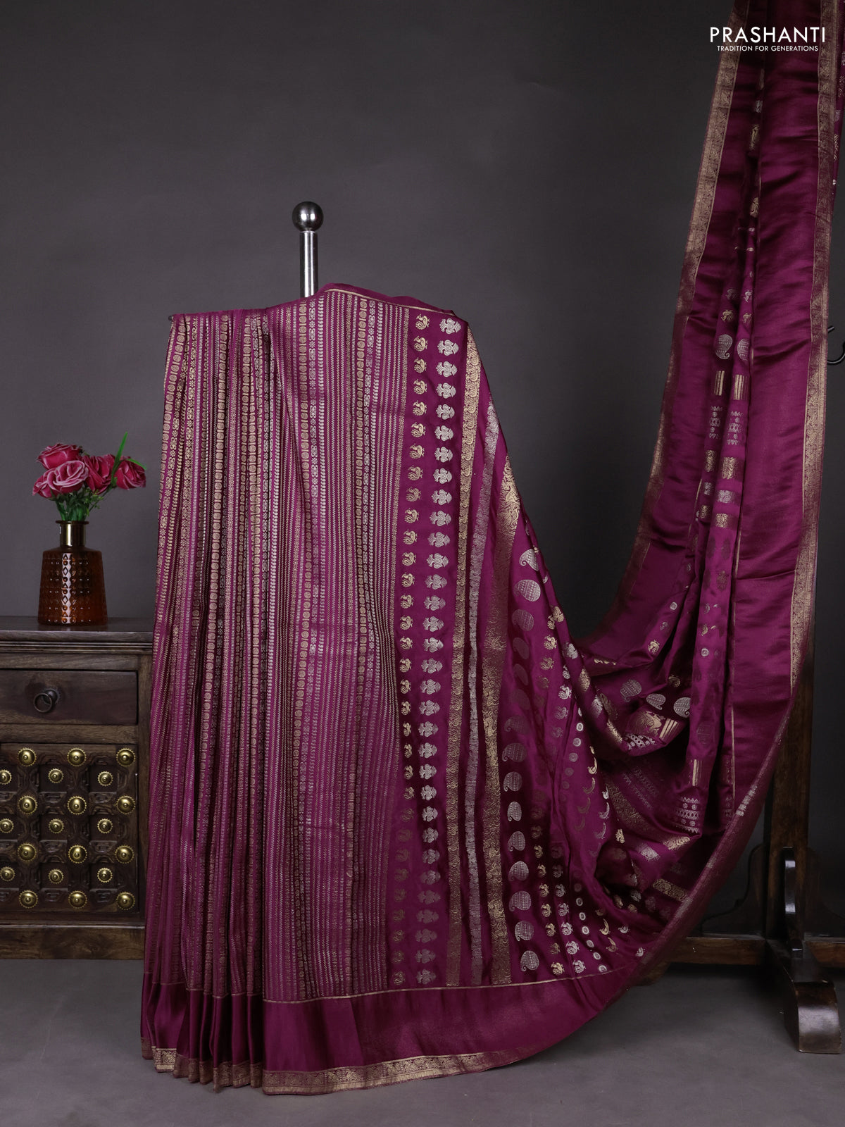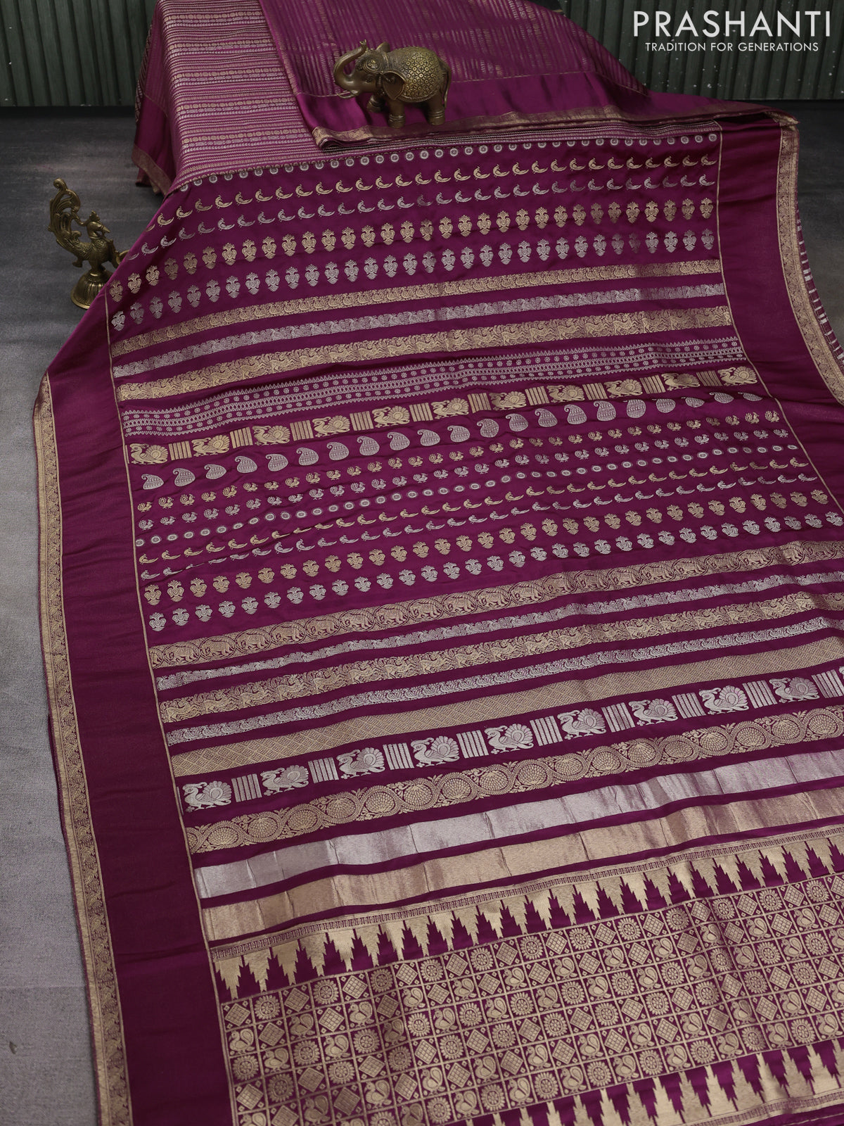 Semi kanchipuram partly saree wine shade with allover silver & zari weaves and rettapet zari woven border