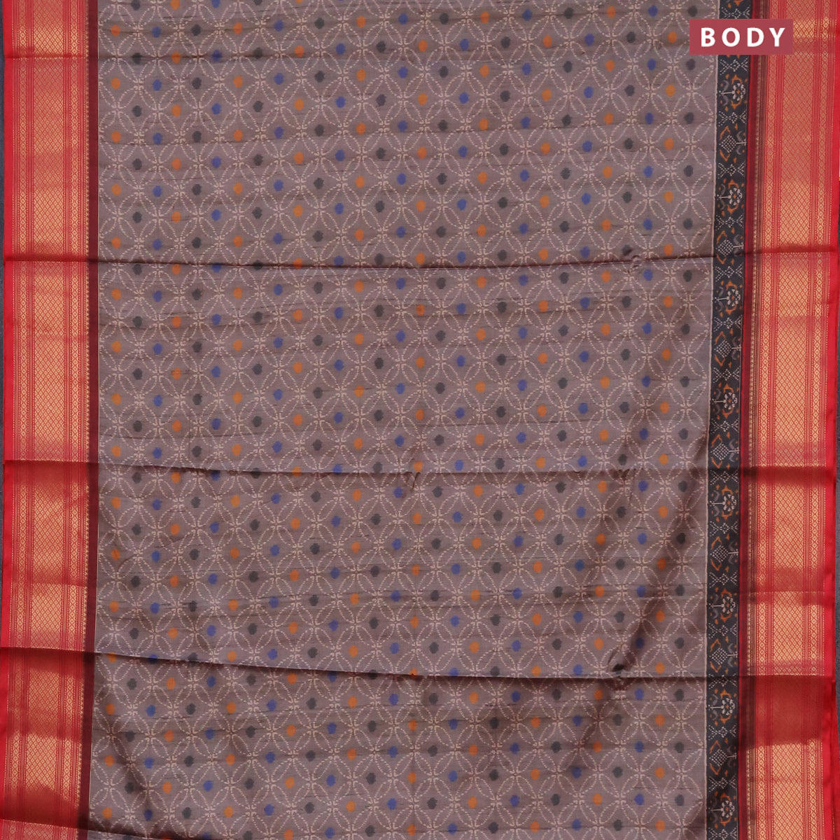 Semi kanchipuram silk saree brown shade and red with allover prints and zari woven border