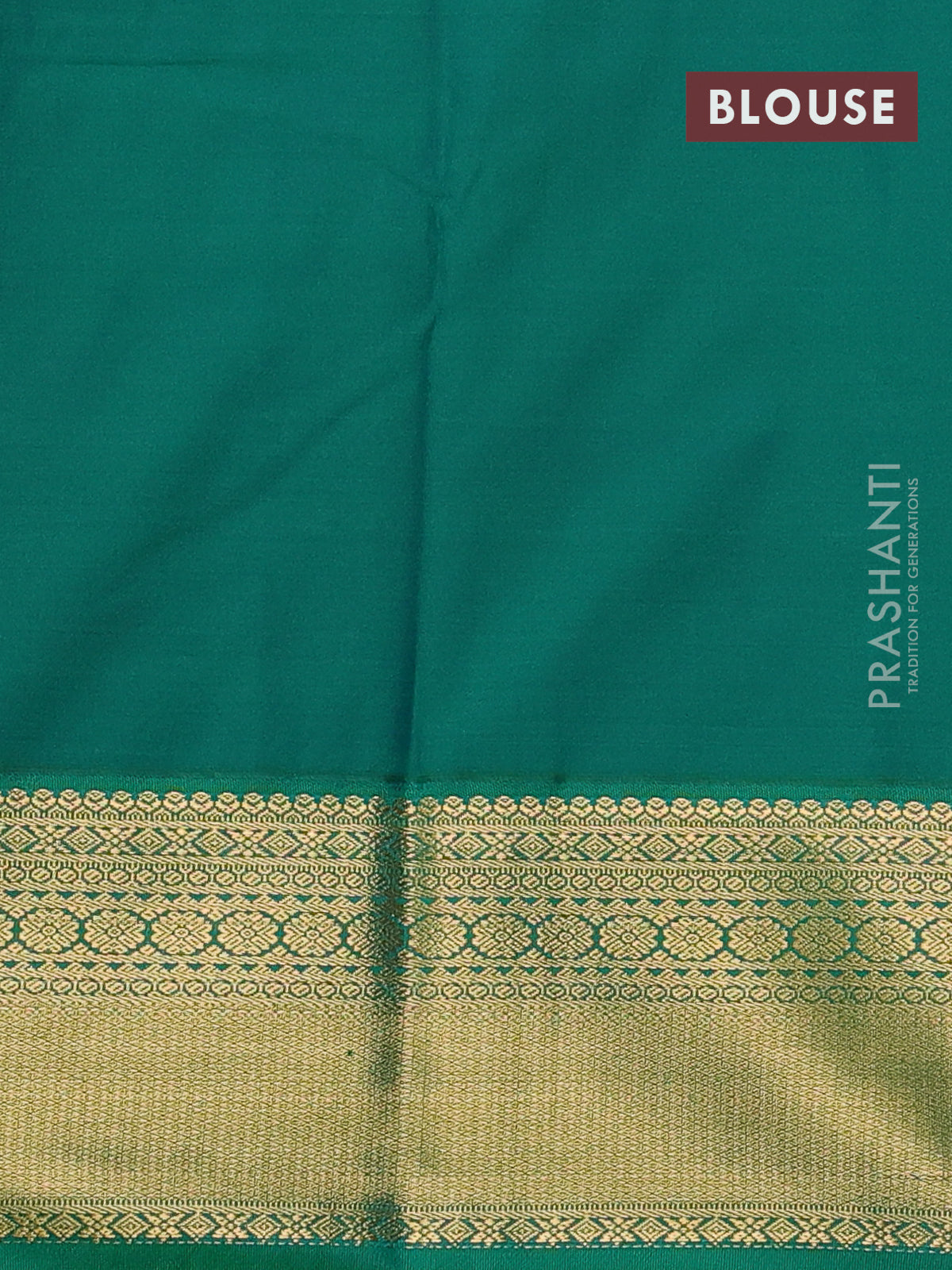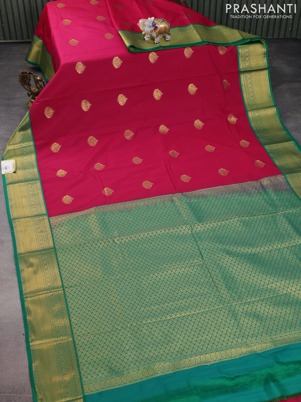 Semi kanchipuram silk saree dark pink and green with zari woven buttas and zari woven korvai border