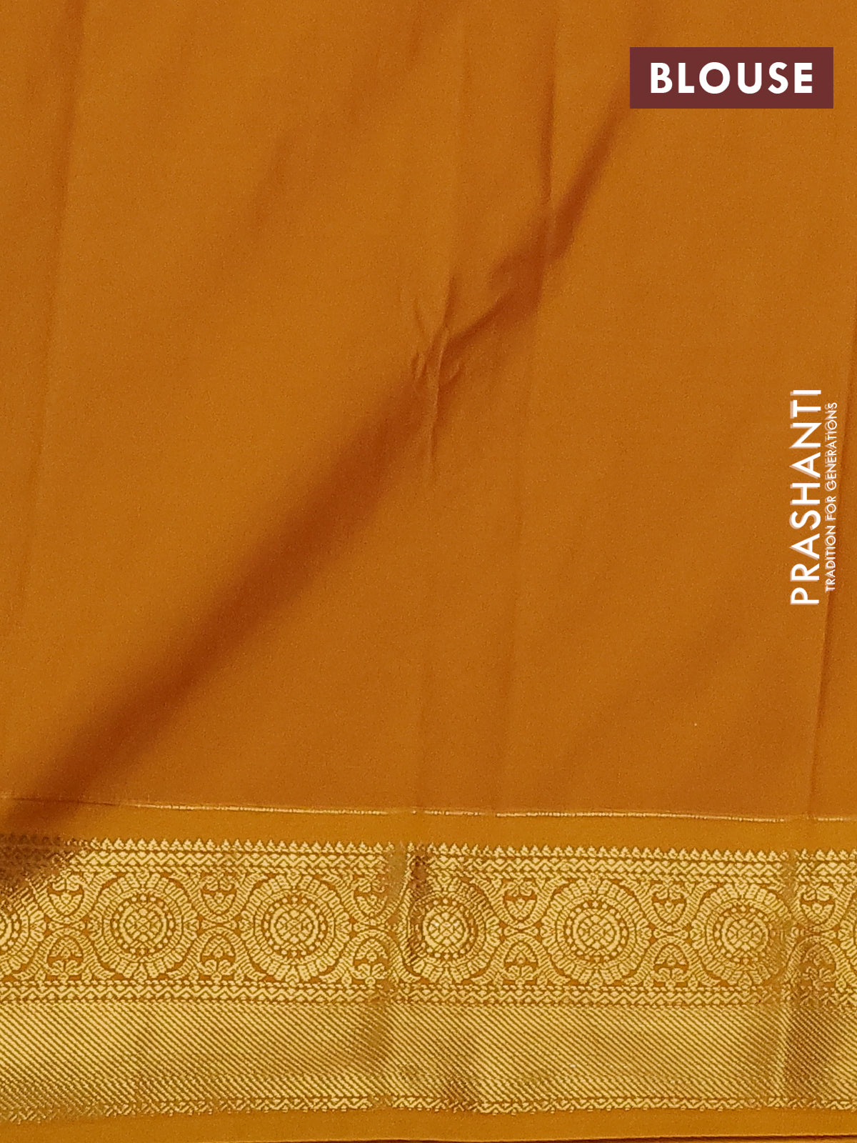 Semi kanchipuram silk saree green and mustard yellow with allover zari weaves & buttas and zari woven korvai border