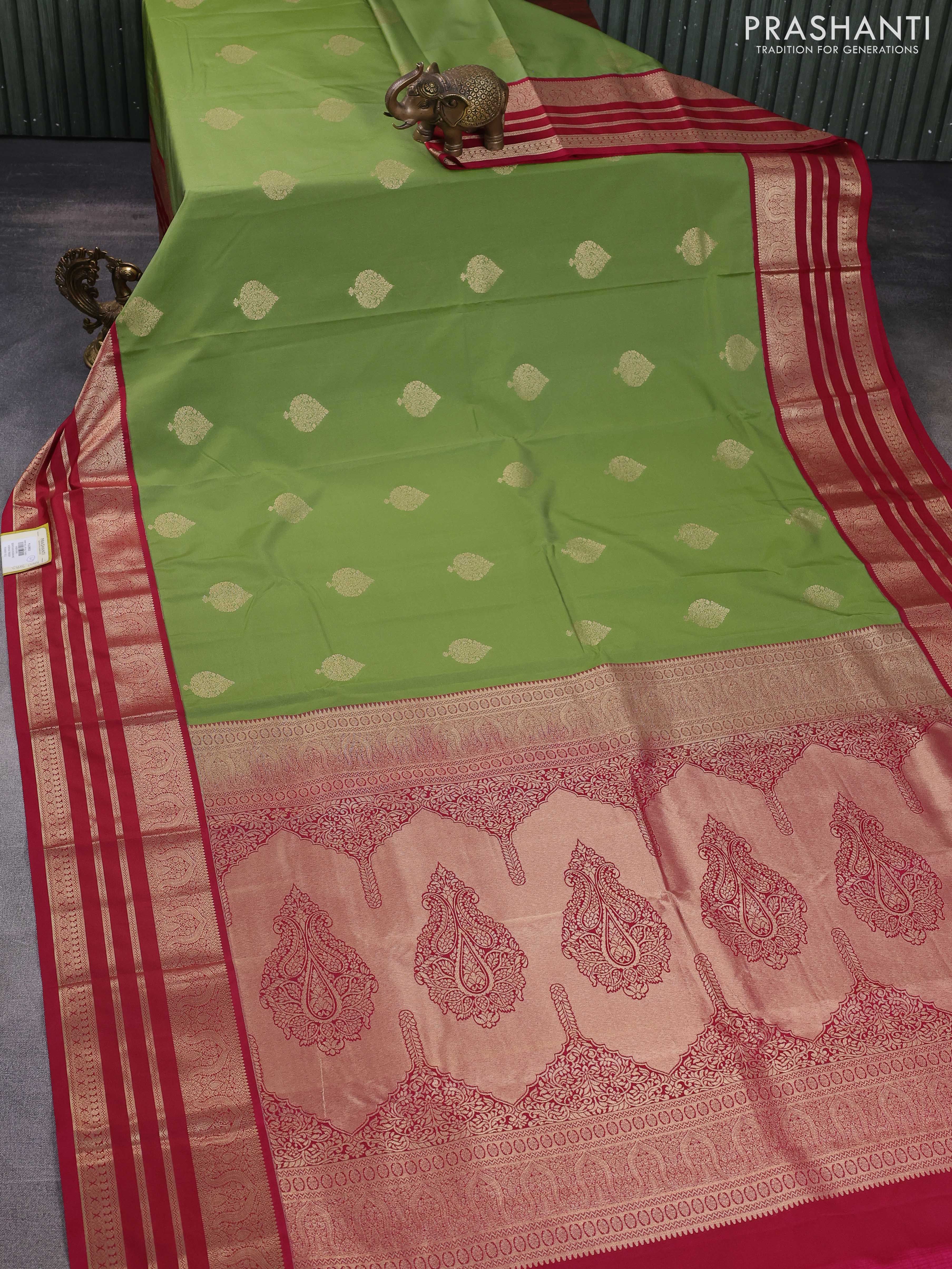 Semi kanchipuram silk saree pastel green and pink with zari woven buttas and rich zari woven korvai border