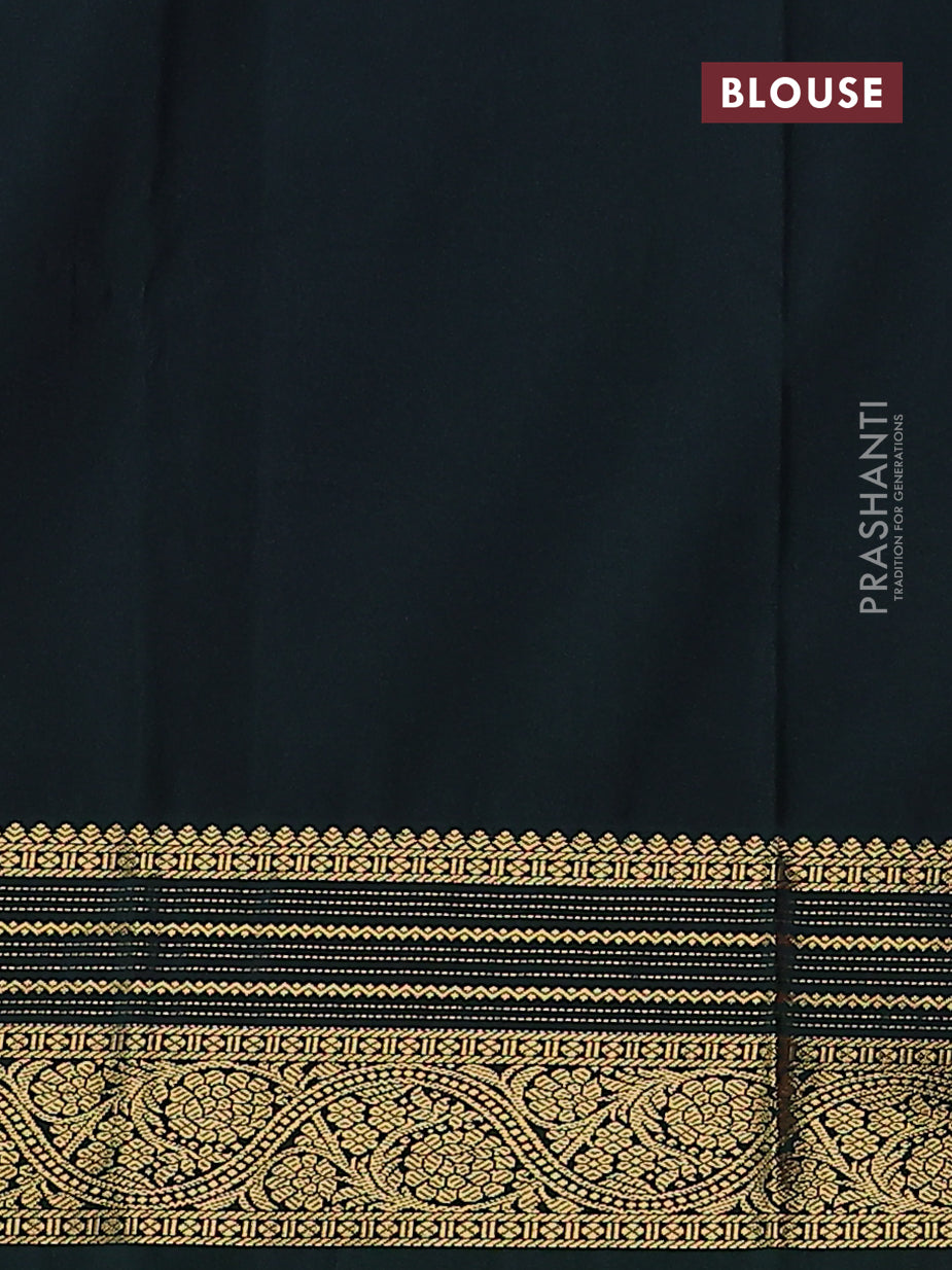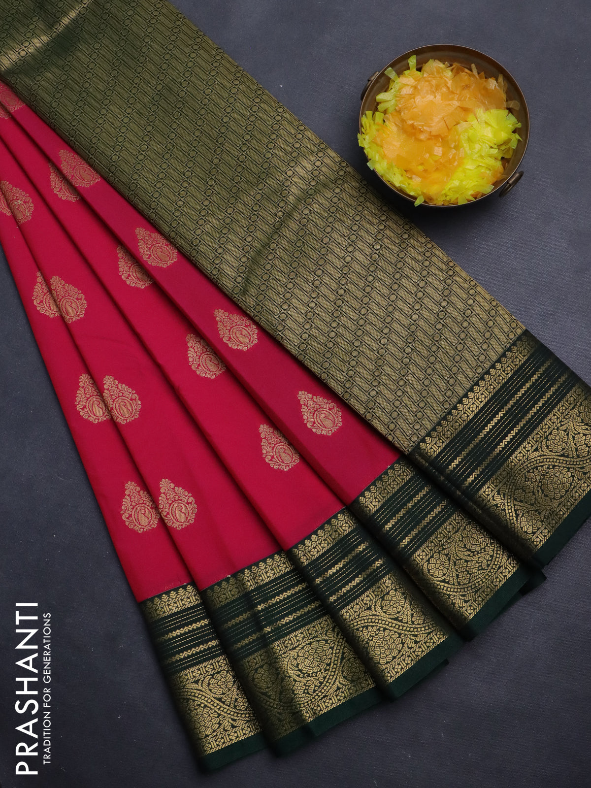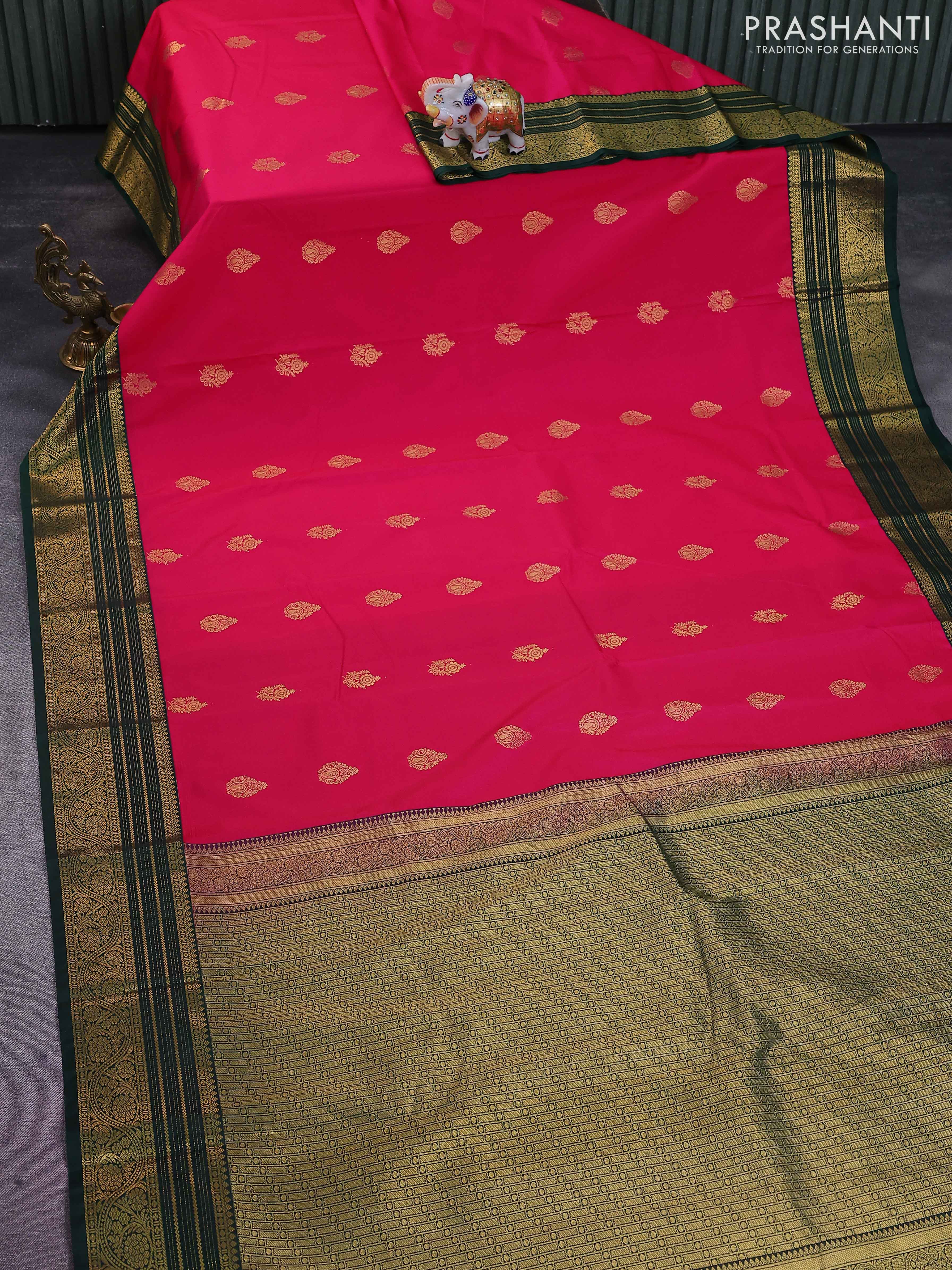 Semi kanchipuram silk saree pink and dark green with zari woven floral buttas and zari woven korvai border
