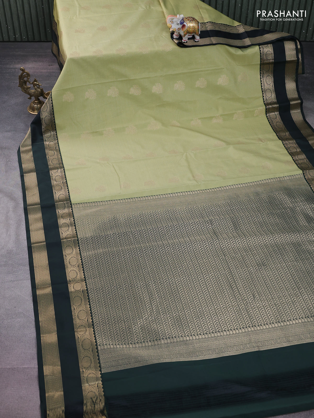 Semi kanchipuram silk saree pista green and bottle green with allover zari weaves and rettapet zari woven korvai border