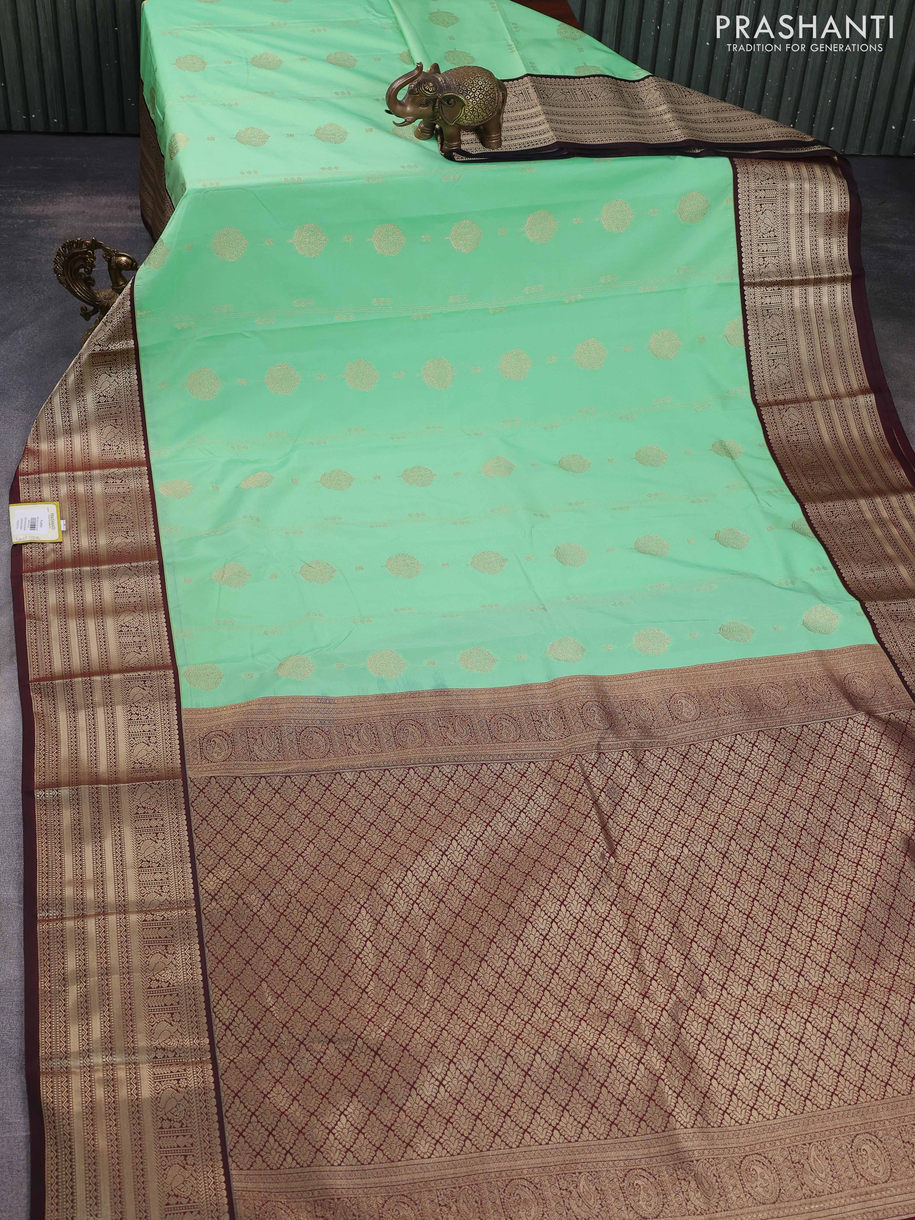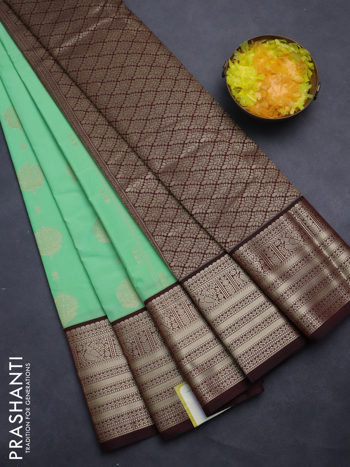Semi kanchipuram silk saree teal green shade and deep maroon with allover zari weaves & buttas and zari woven korvai border