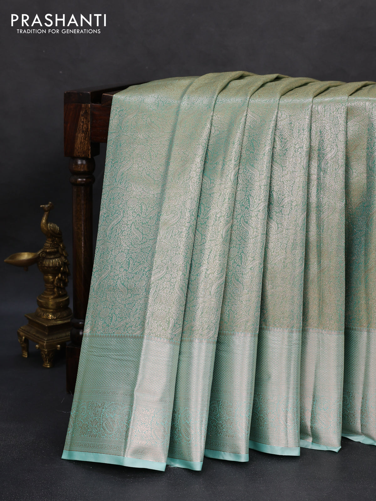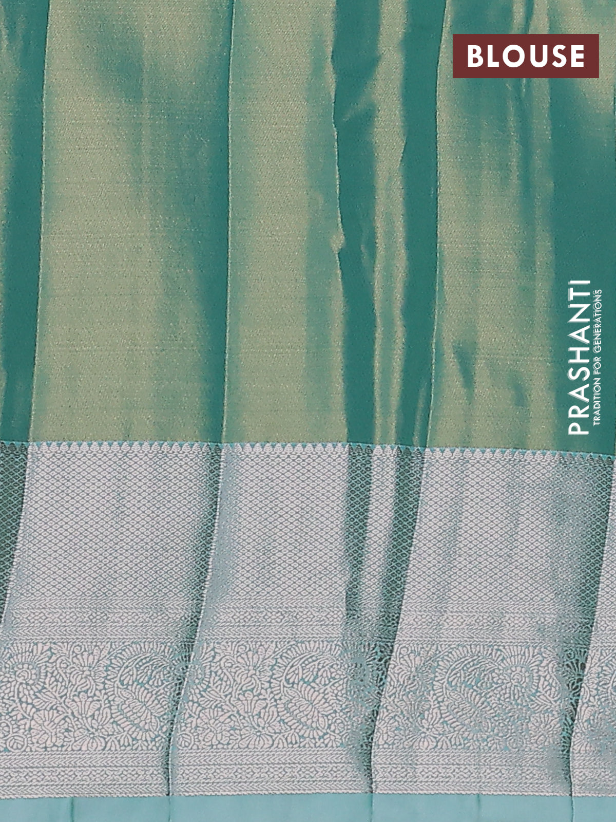 Semi kanchipuram tissue silk saree dual shade of teal with allover silver zari woven brocade weaves and zari woven border
