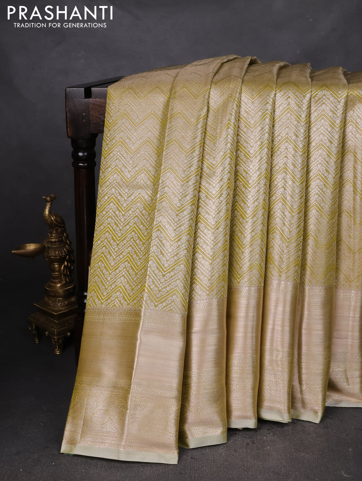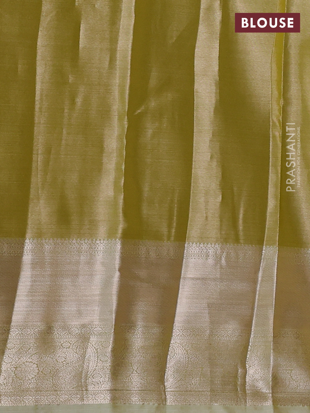 Semi kanchipuram tissue silk saree elaichi green with allover silver zari woven brocade weaves and long zari woven border
