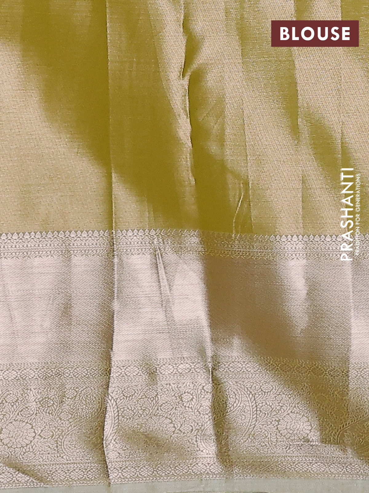 Semi kanchipuram tissue silk saree elaichi green with allover silver zari woven brocade weaves and long zari woven border