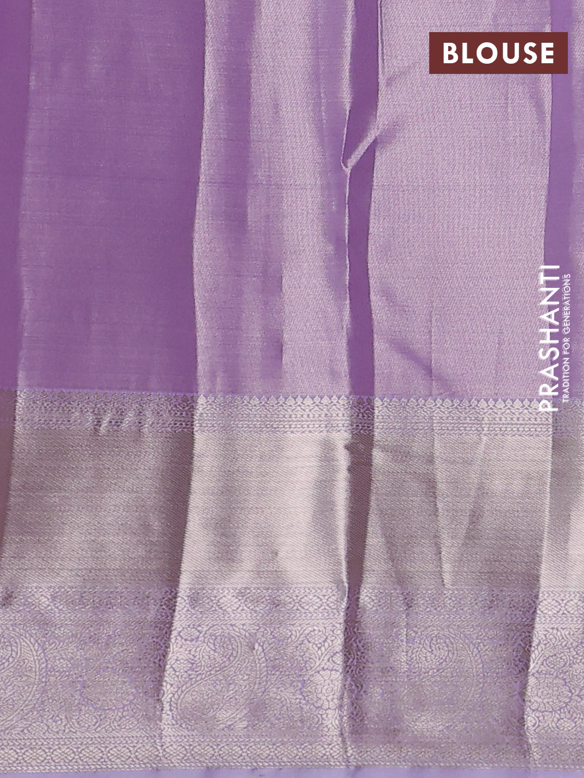 Semi kanchipuram tissue silk saree lavender with allover silver zari woven brocade weaves and long zari woven border