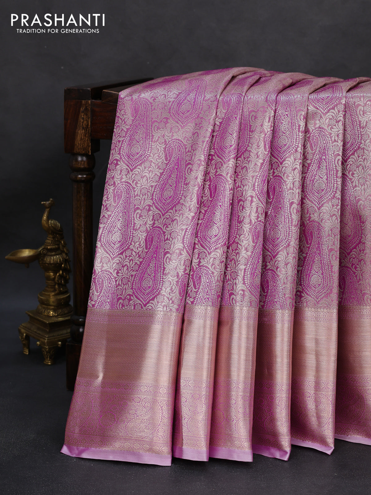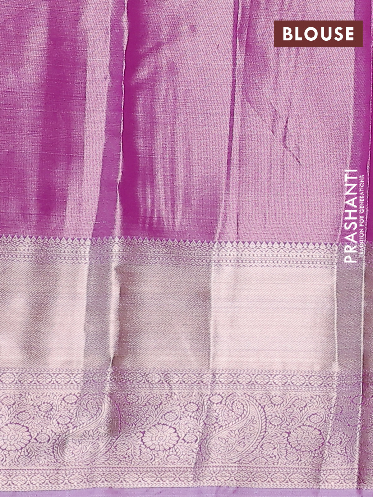 Semi kanchipuram tissue silk saree lavender with allover silver zari woven paisley brocade weaves and long zari woven border