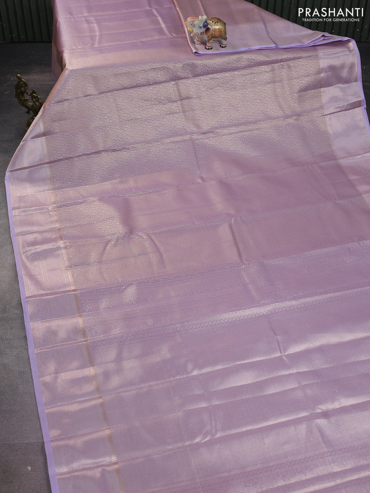 Semi kanchipuram tissue silk saree mild lavender with allover silver zari woven brocade weaves and zari woven border
