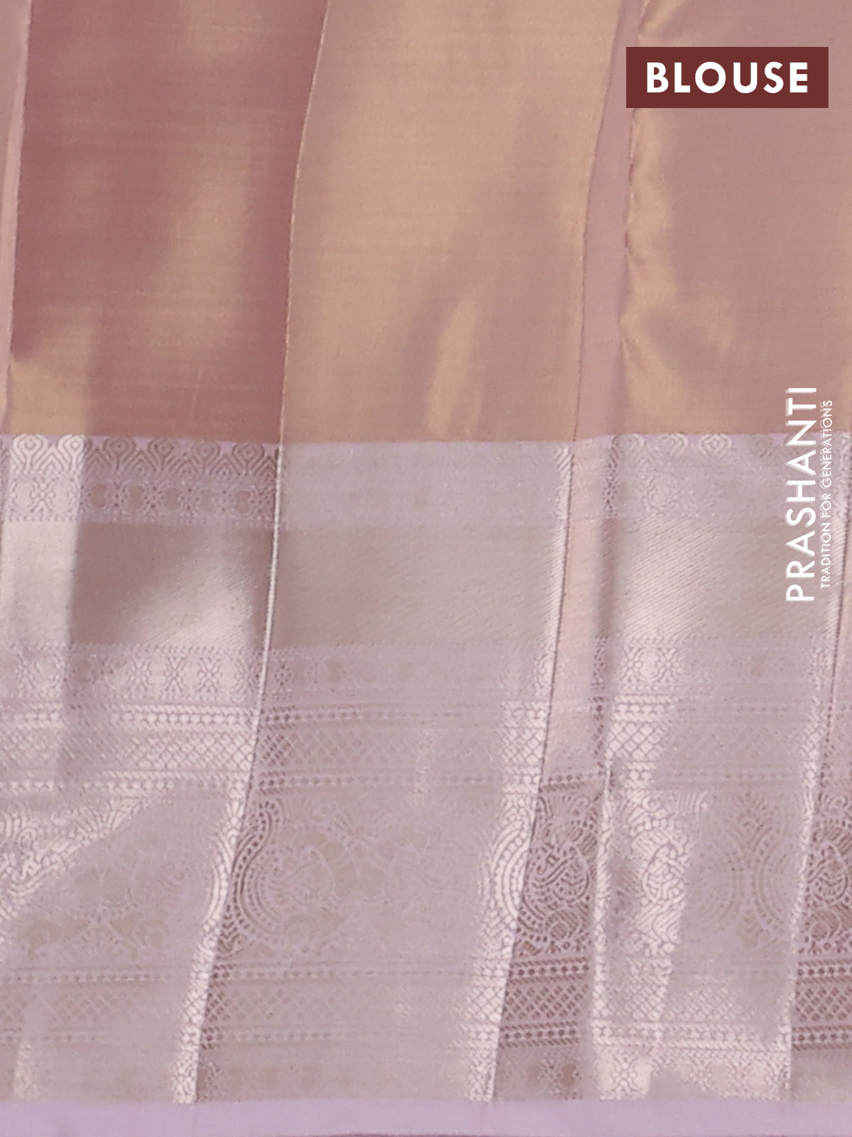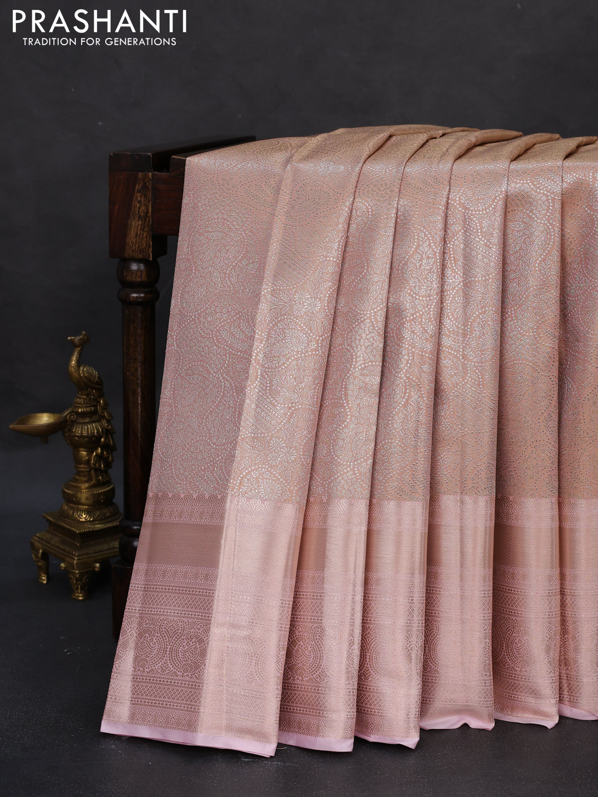 Semi kanchipuram tissue silk saree pastel peach and baby pink with allover silver zari woven brocade weaves and long zari woven border