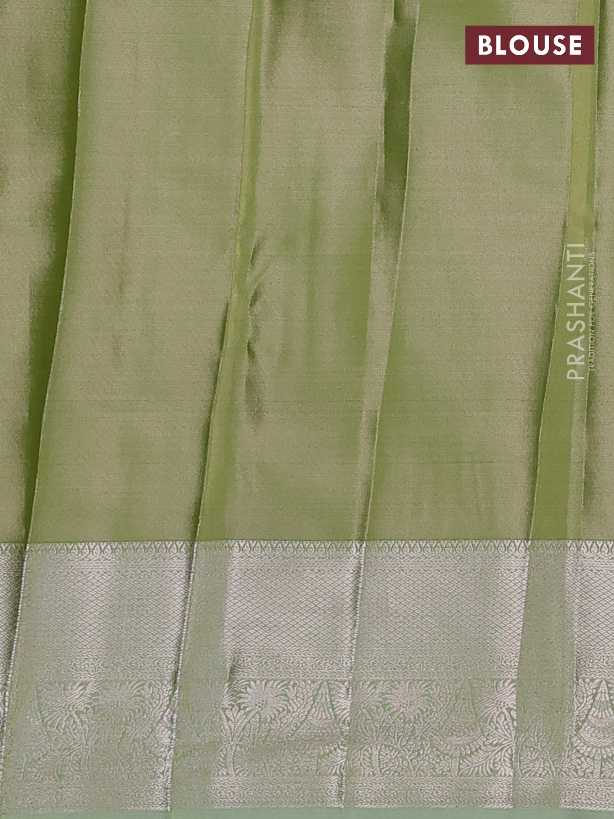Semi kanchipuram tissue silk saree pista green with allover silver zari woven brocade weaves and zari woven border