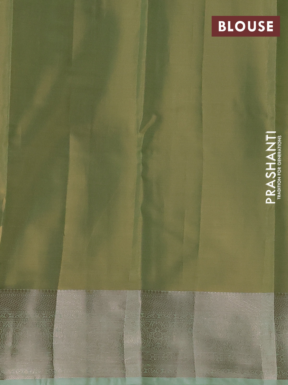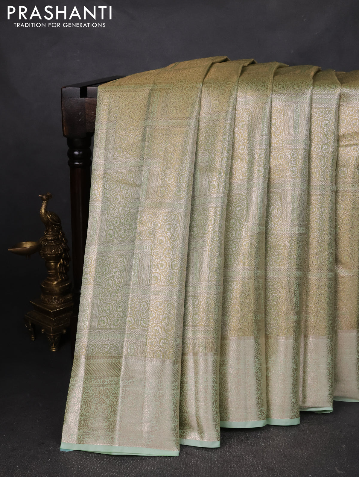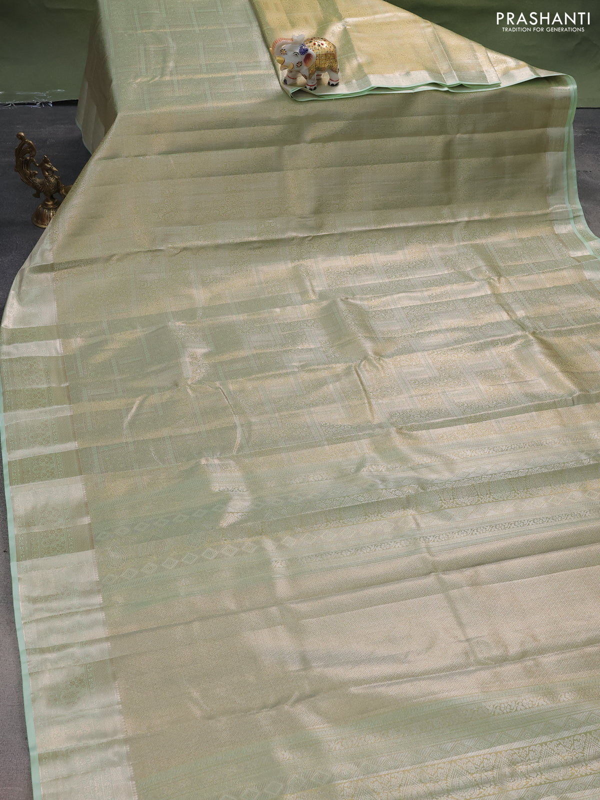 Semi kanchipuram tissue silk saree pista green with allover silver zari woven brocade weaves and zari woven border