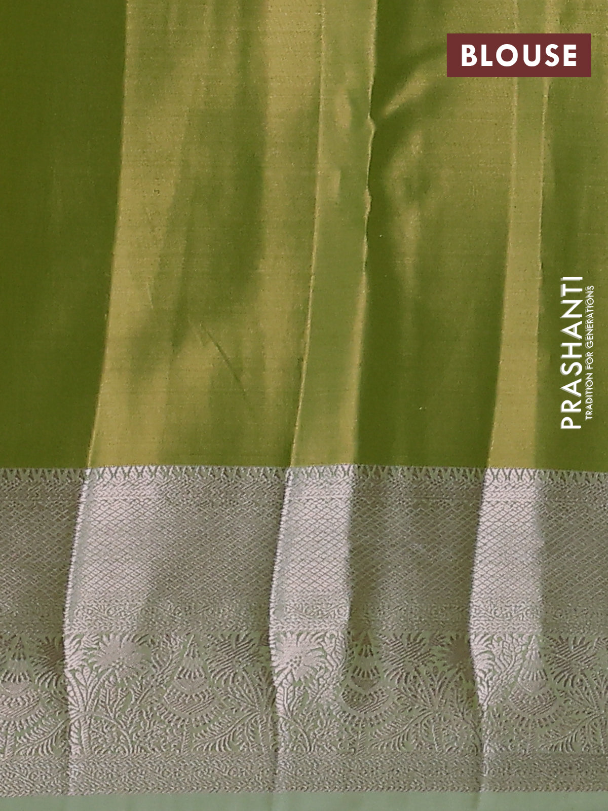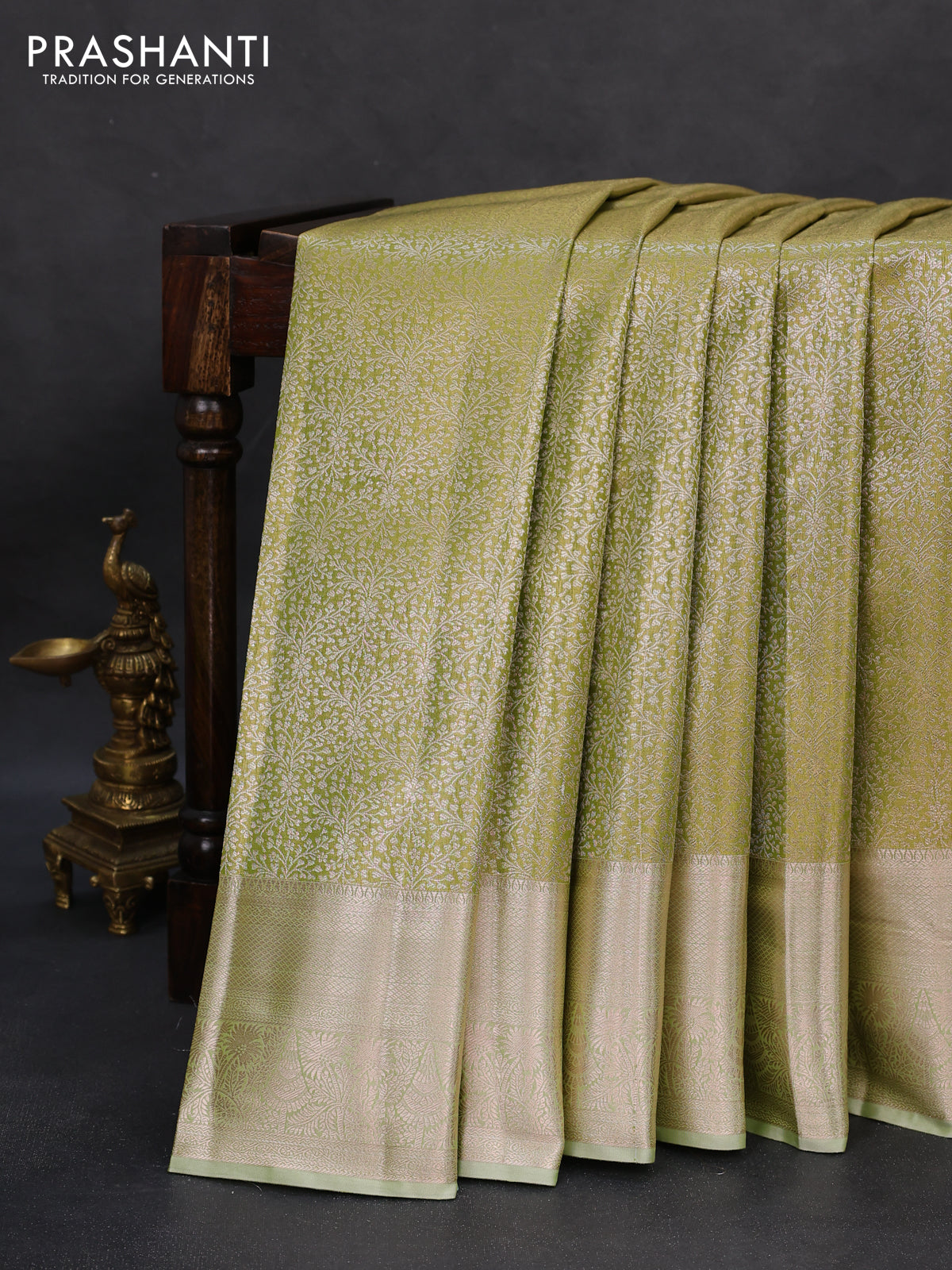 Semi kanchipuram tissue silk saree pista green with allover silver zari woven brocade weaves and zari woven border