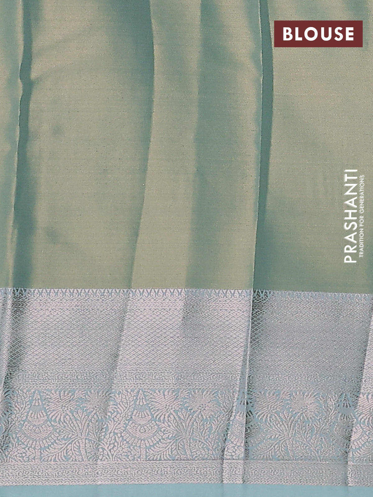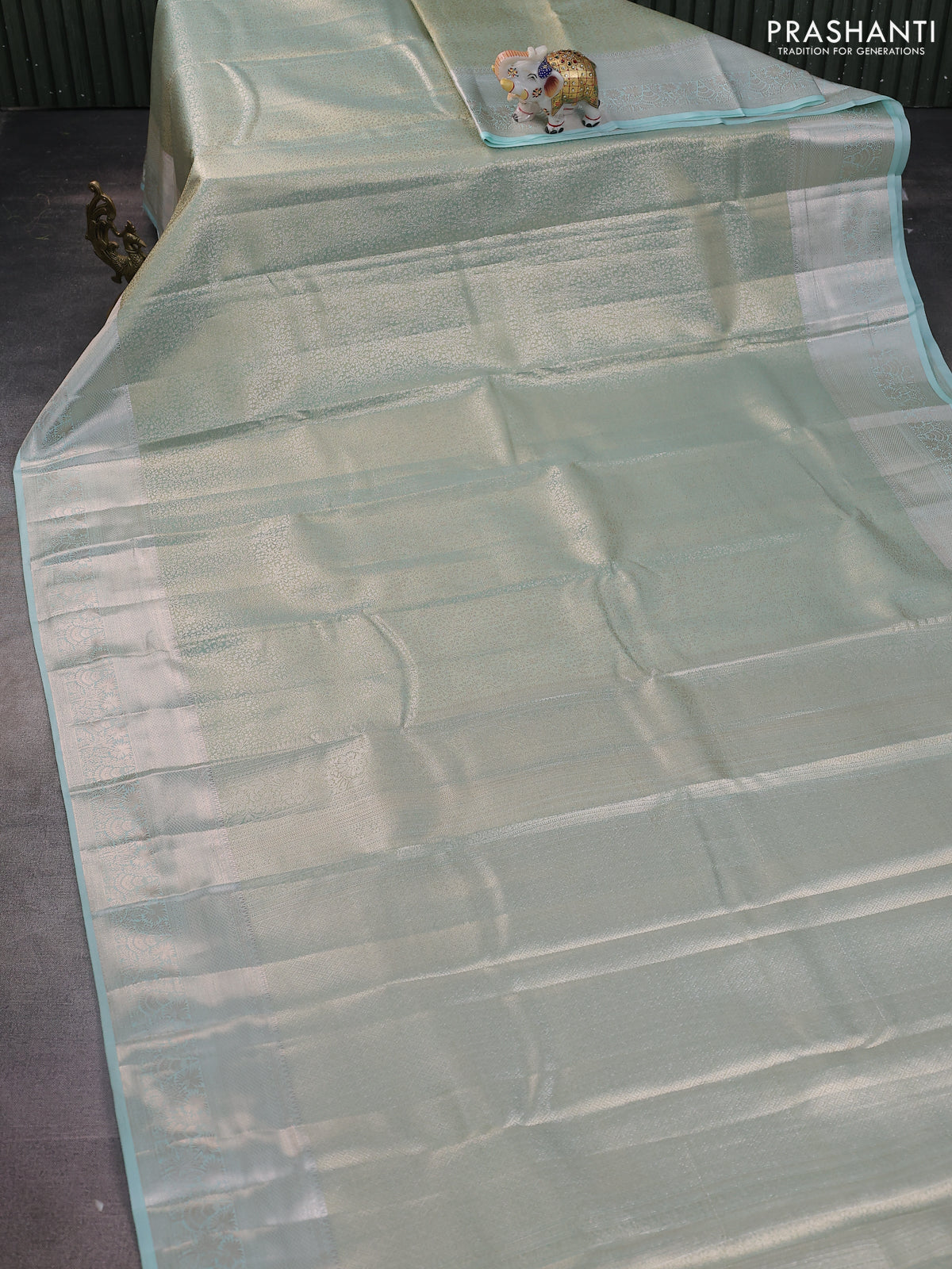 Semi kanchipuram tissue silk saree teal with allover silver zari woven brocade weaves and zari woven border