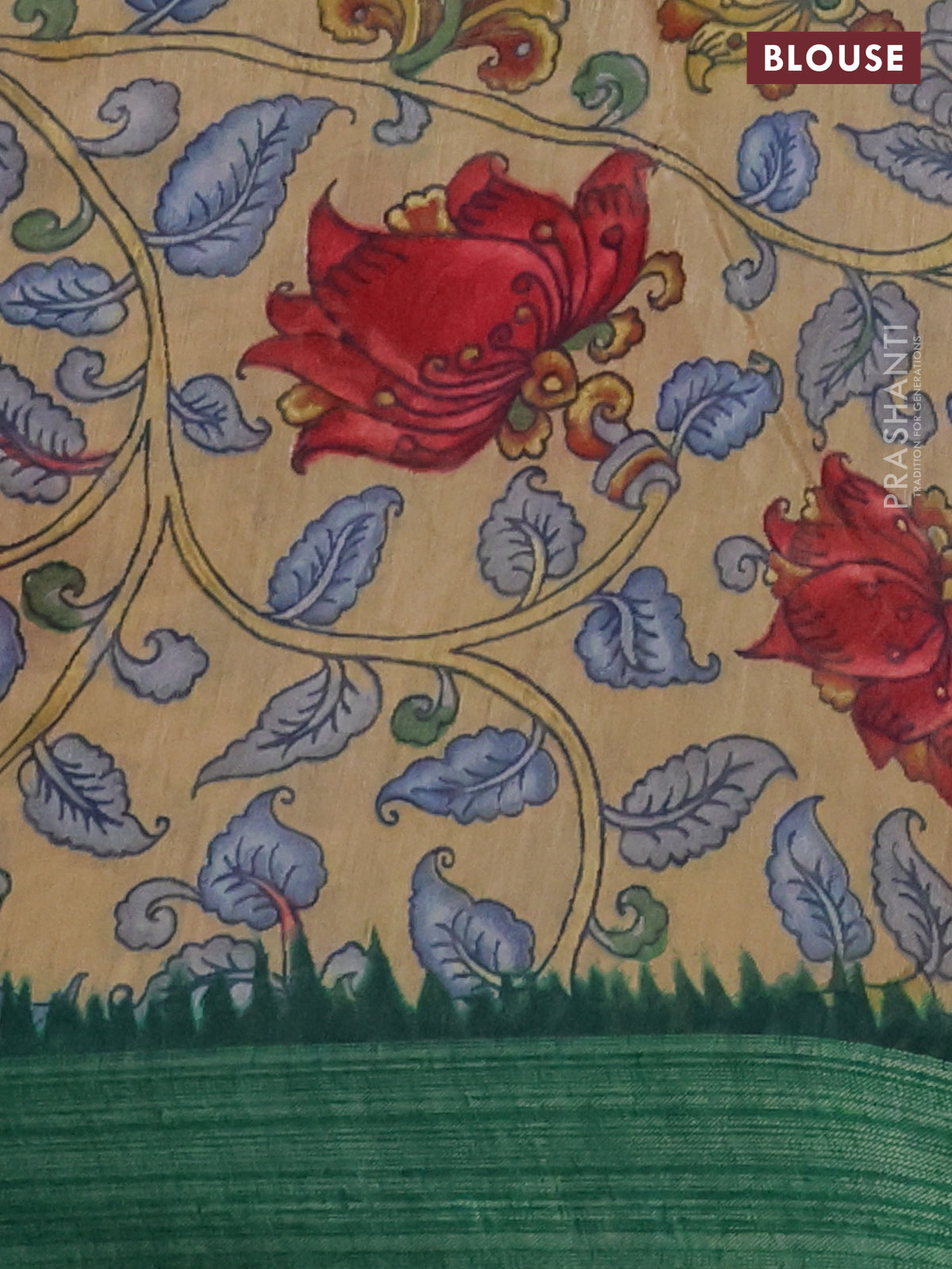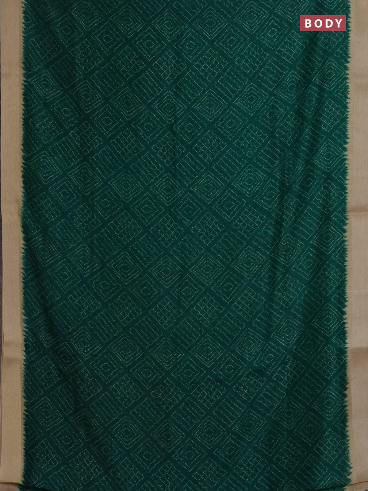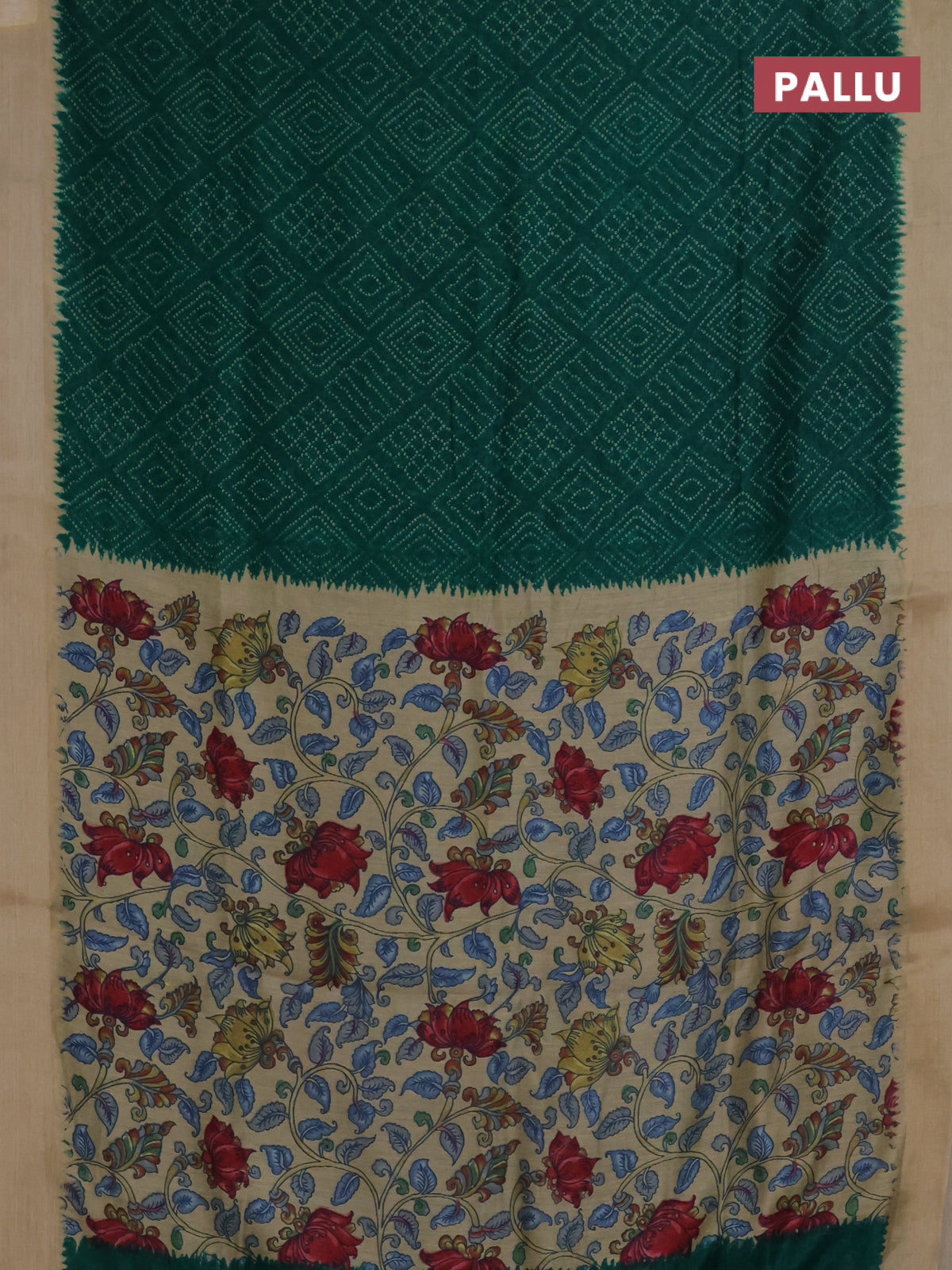 Semi linen saree green and beige with allover bandhani prints and kalamkari printed pallu & blouse