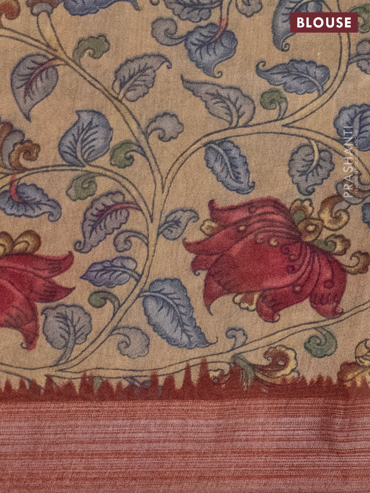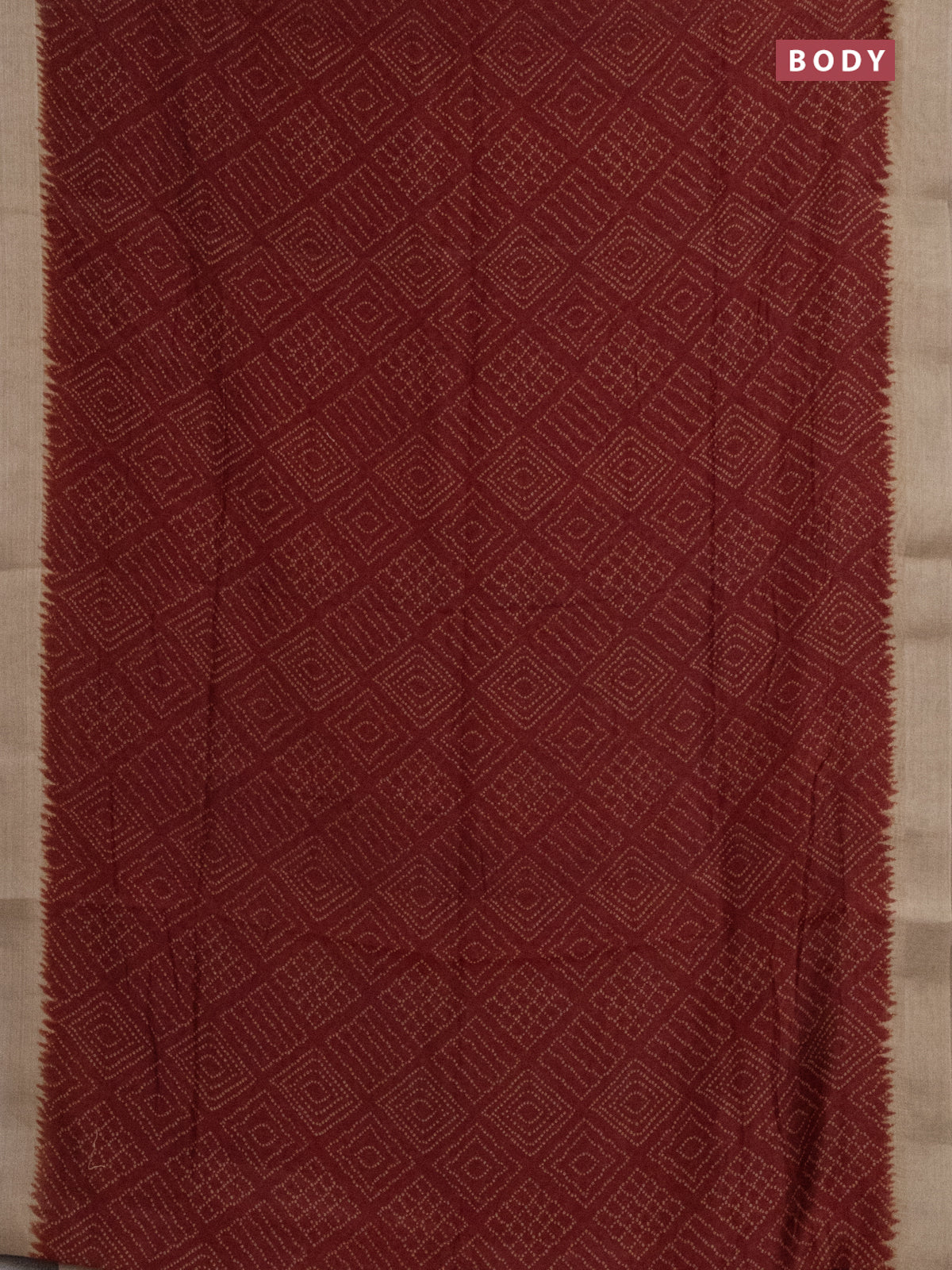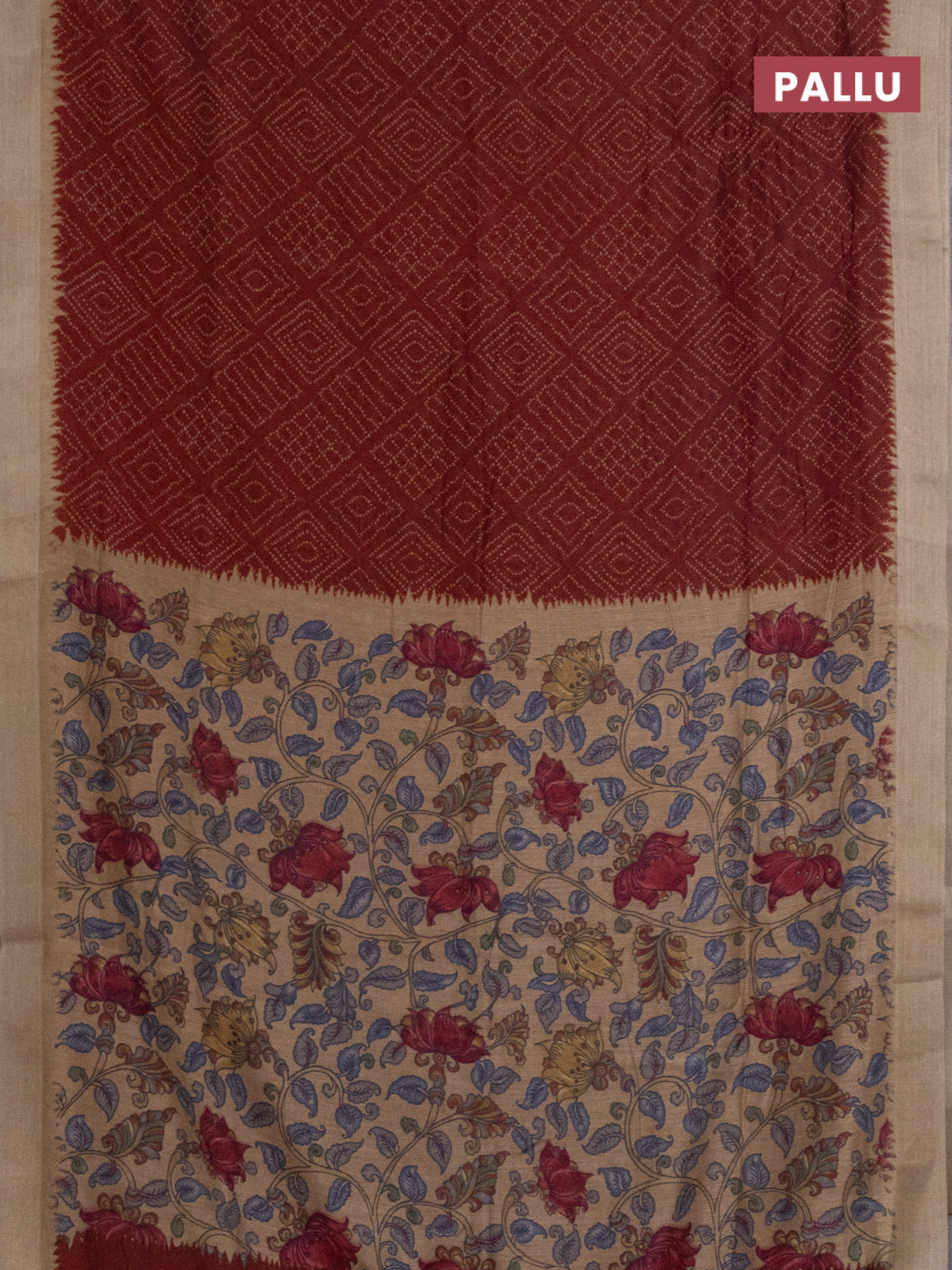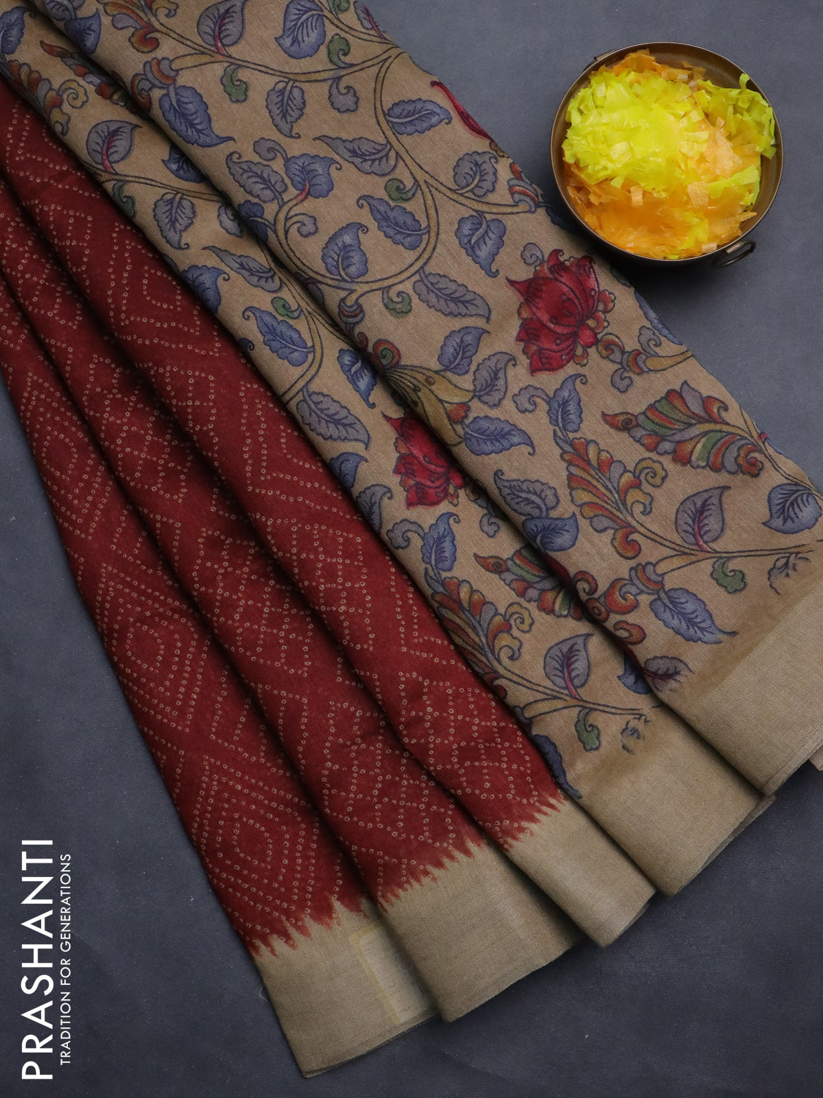 Semi linen saree maroon and beige with allover bandhani prints and kalamkari printed pallu & blouse