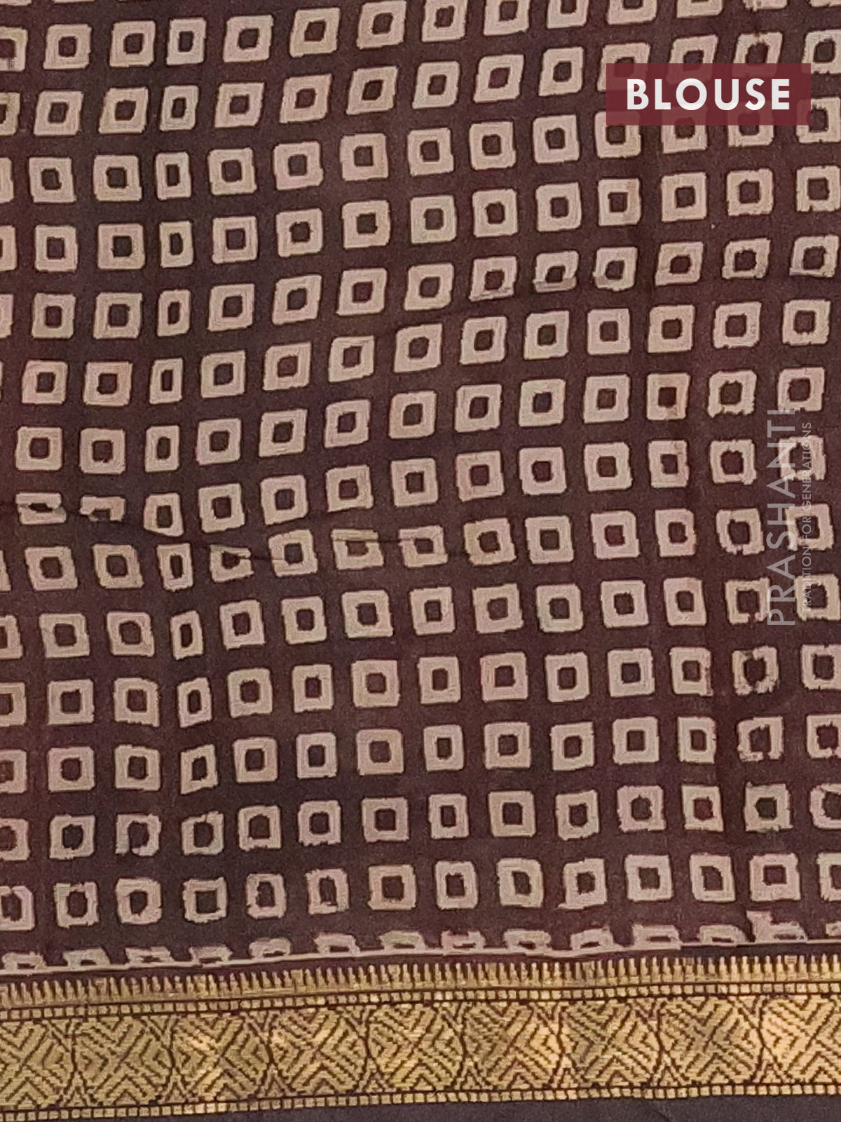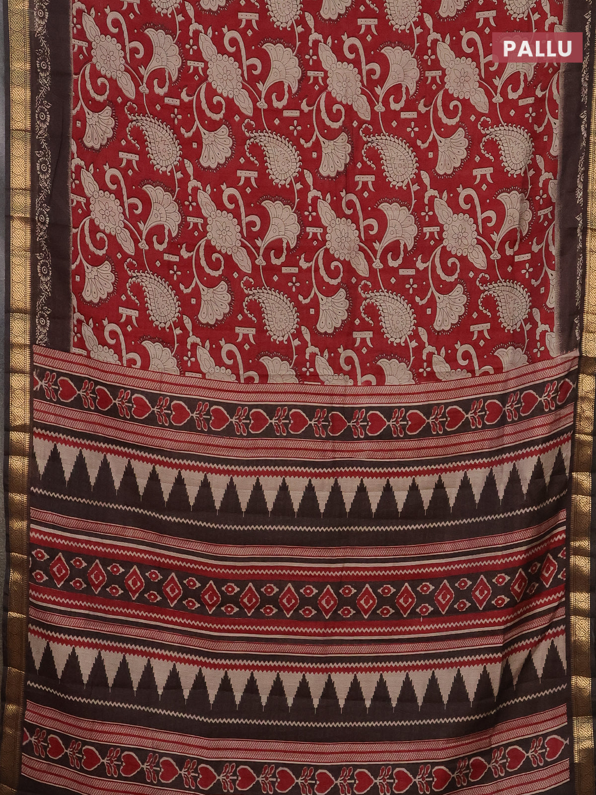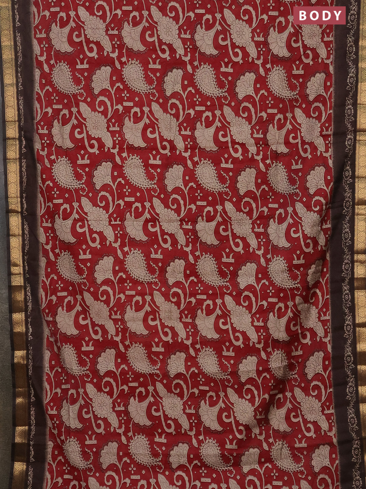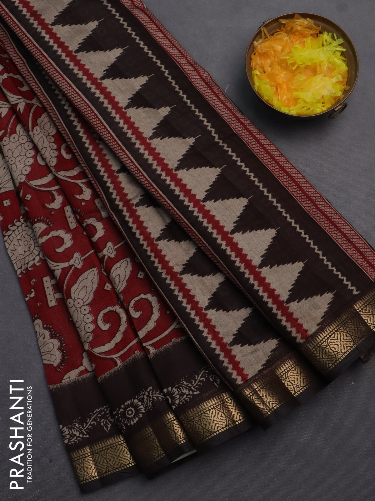 Semi maheshwari cotton saree maroon and coffee brown with allover kalamkari prints and zari woven border