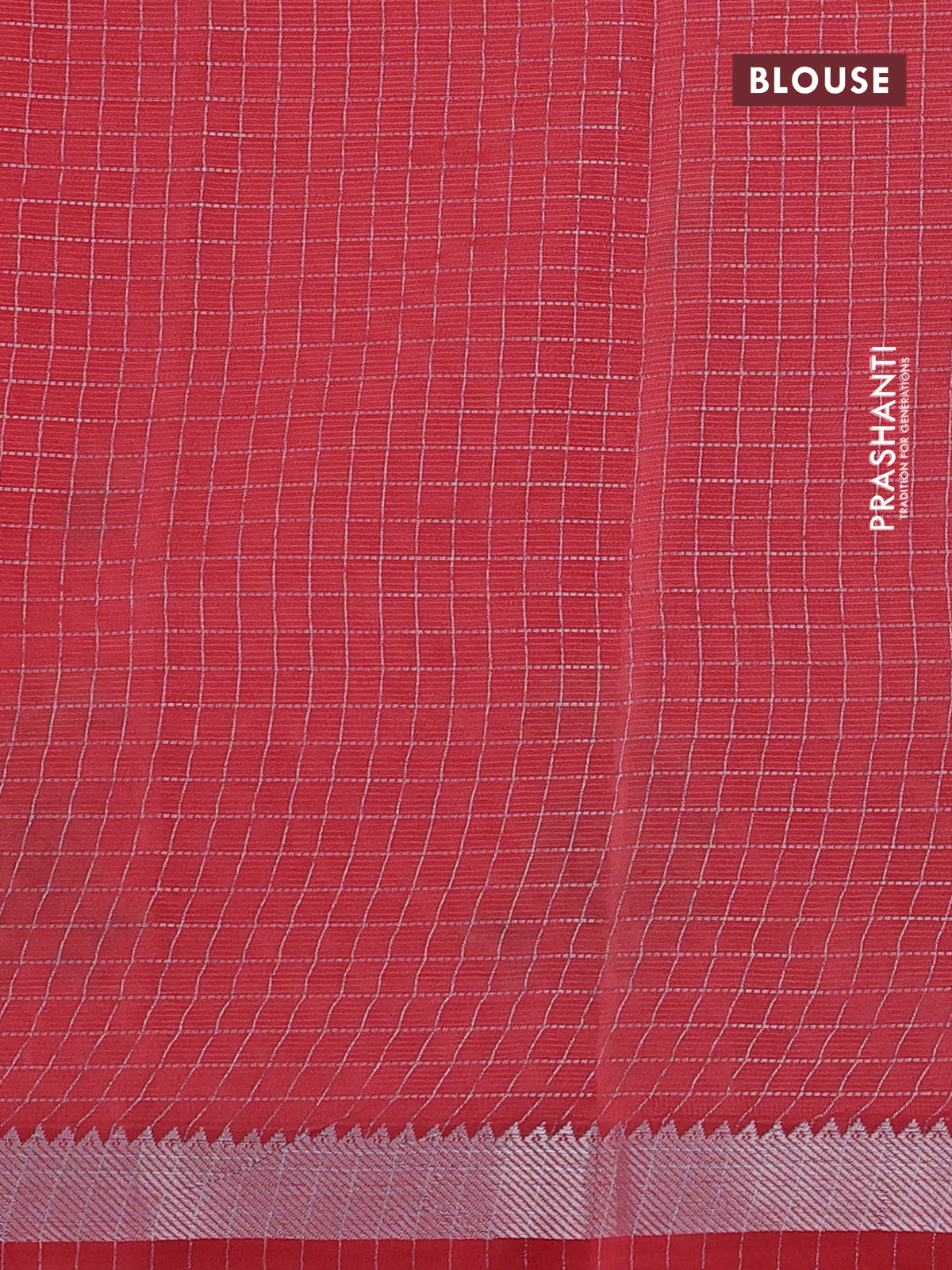 Semi Mangalgiri silk cotton saree red shade with allover silver zari checks & embroidery work buttas and silver zari woven border