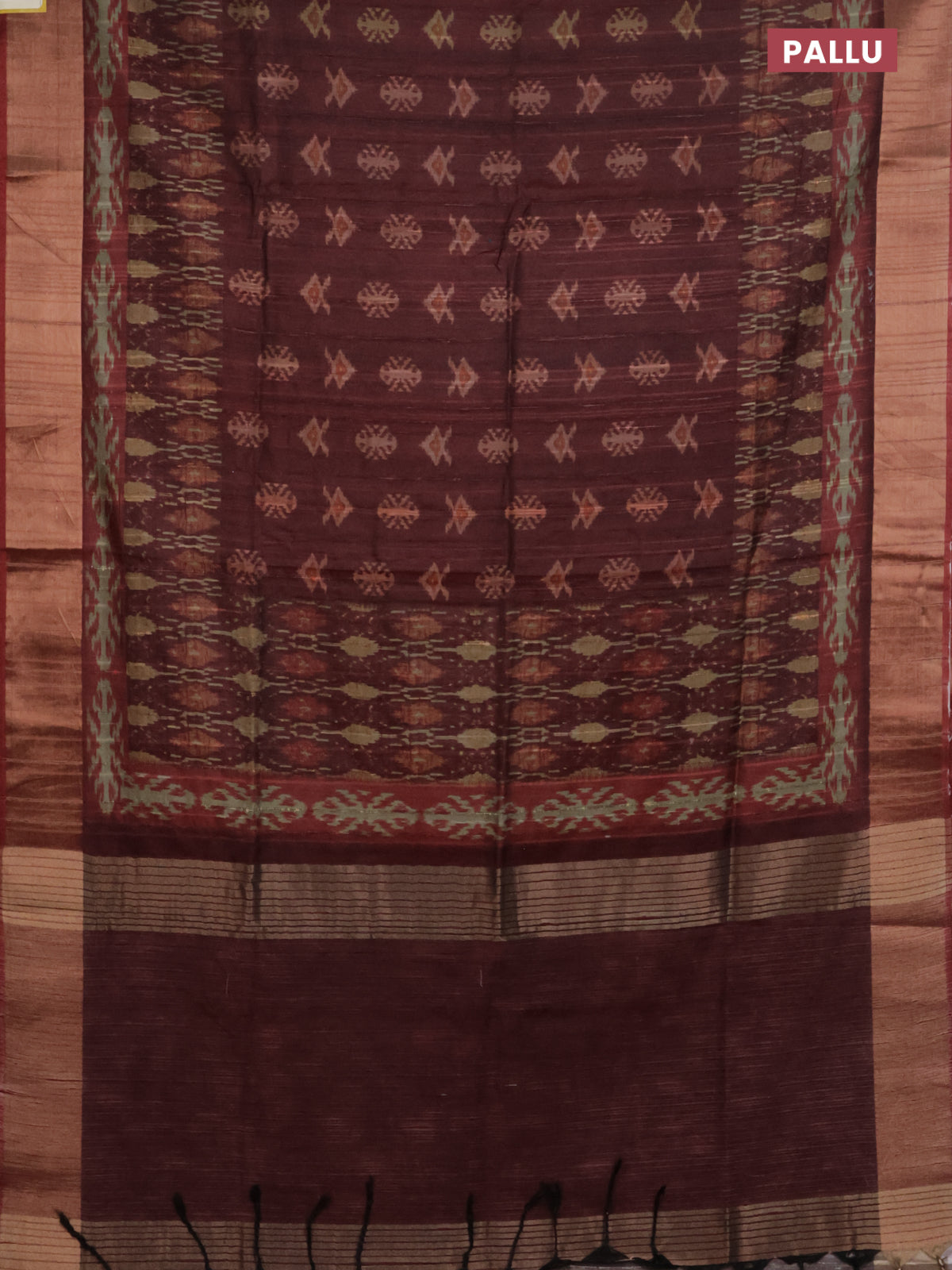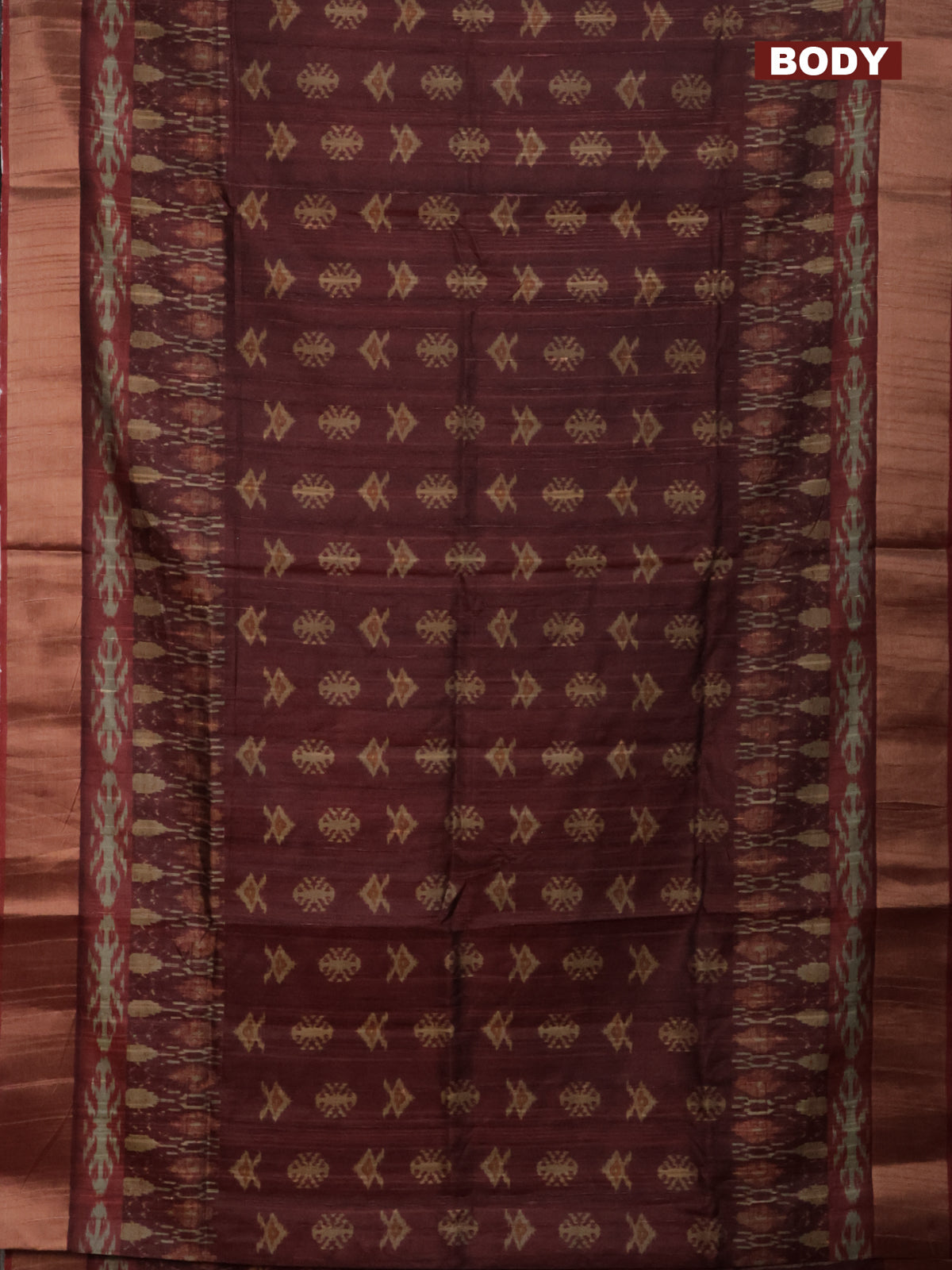 Semi matka saree deep maroon with allover ikat buttas and zari woven border