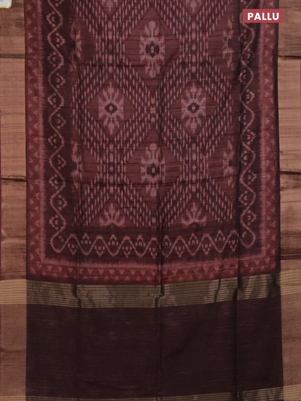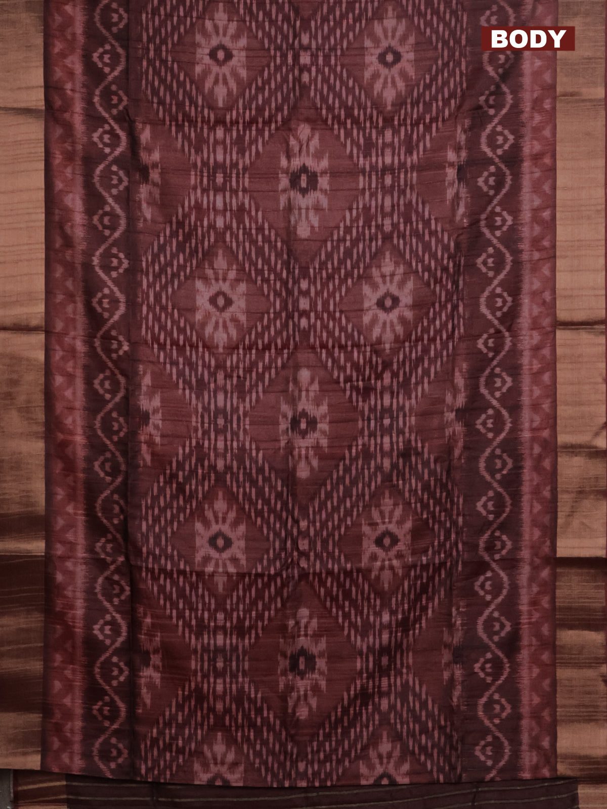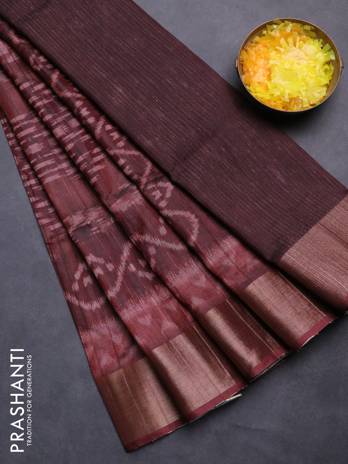Semi matka saree deep maroon with allover ikat prints and zari woven border