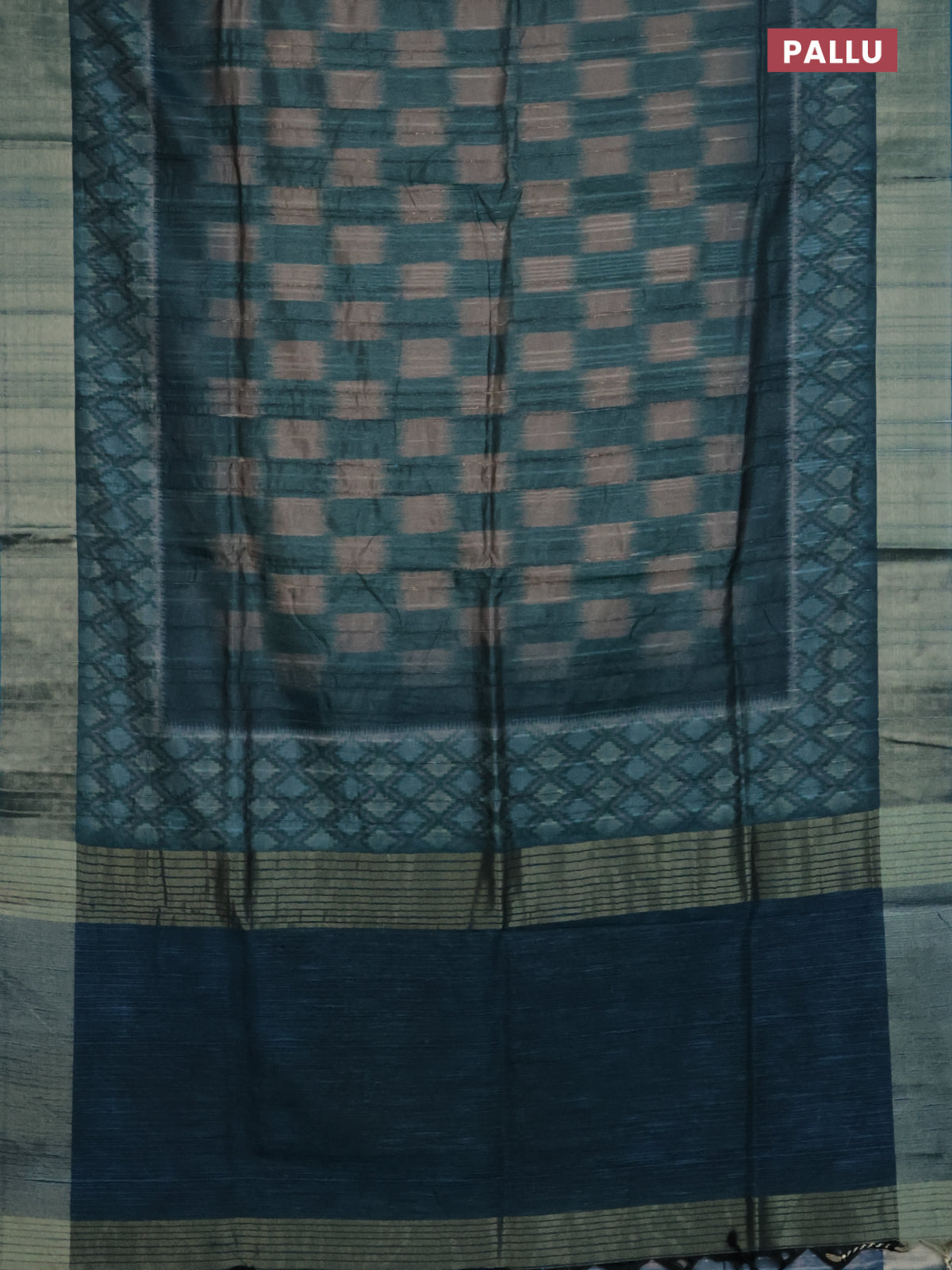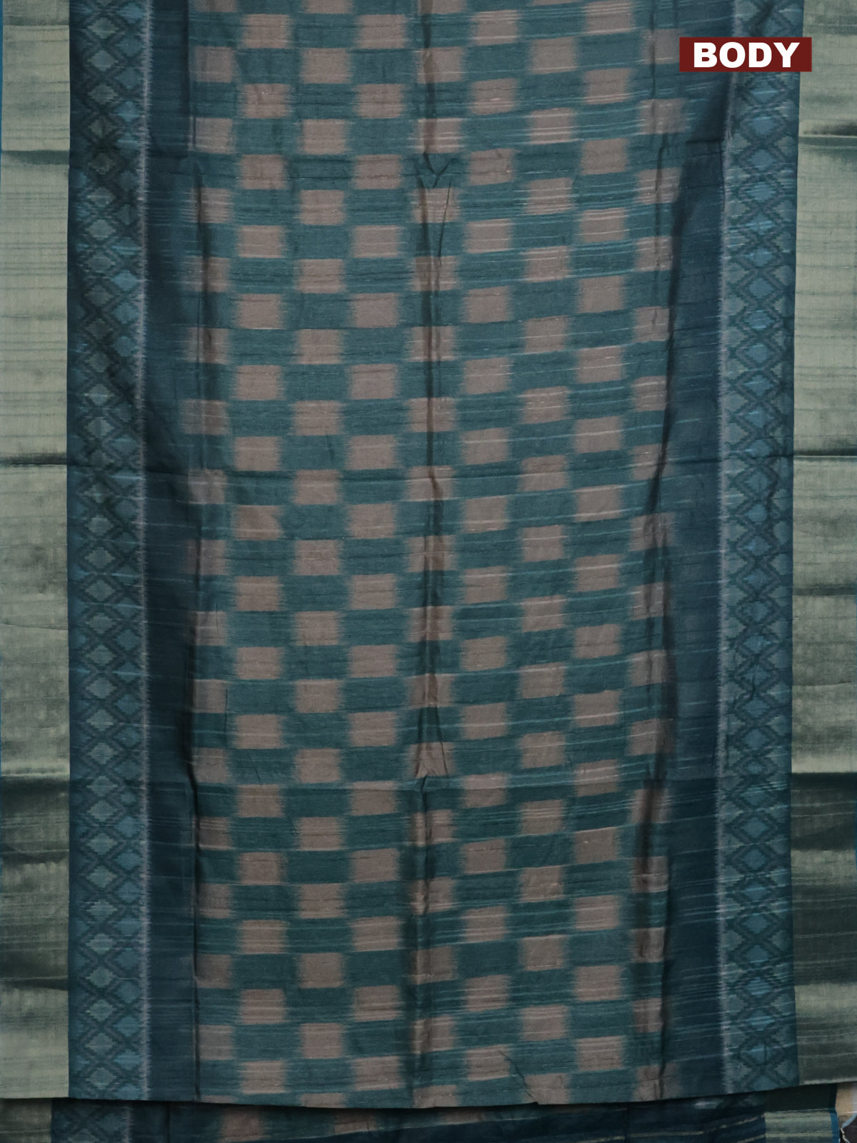 Semi matka saree grey and peacock green with allover ikat prints and zari woven border