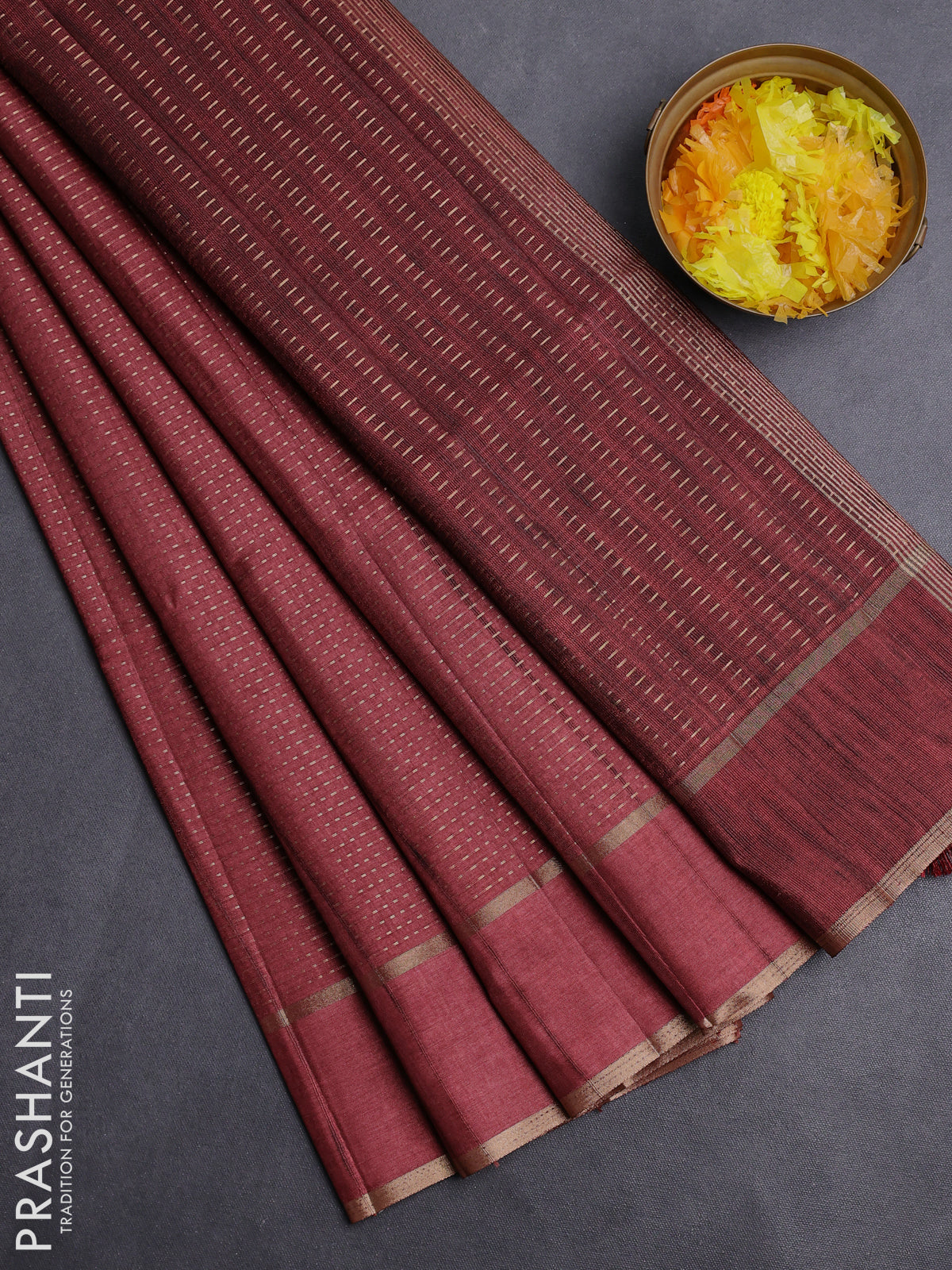 Semi matka saree maroon with allover zari weaves and rettapet zari woven border