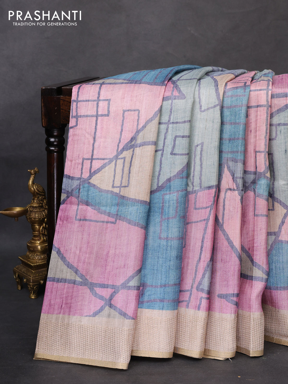 Semi matka saree multi colour and beige with allover geometric prints and zari woven border