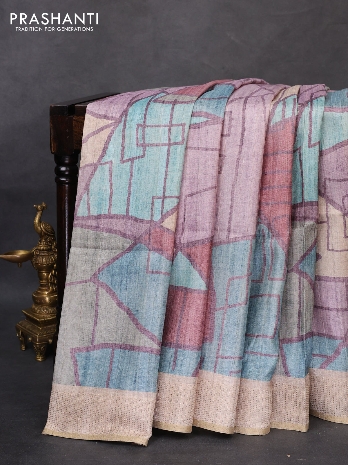 Semi matka saree multi colour and beige with allover geometric prints and zari woven border