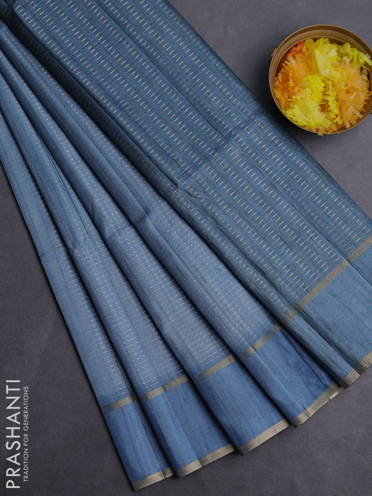 Semi matka saree pastel blue with allover zari weaves and rettapet zari woven border