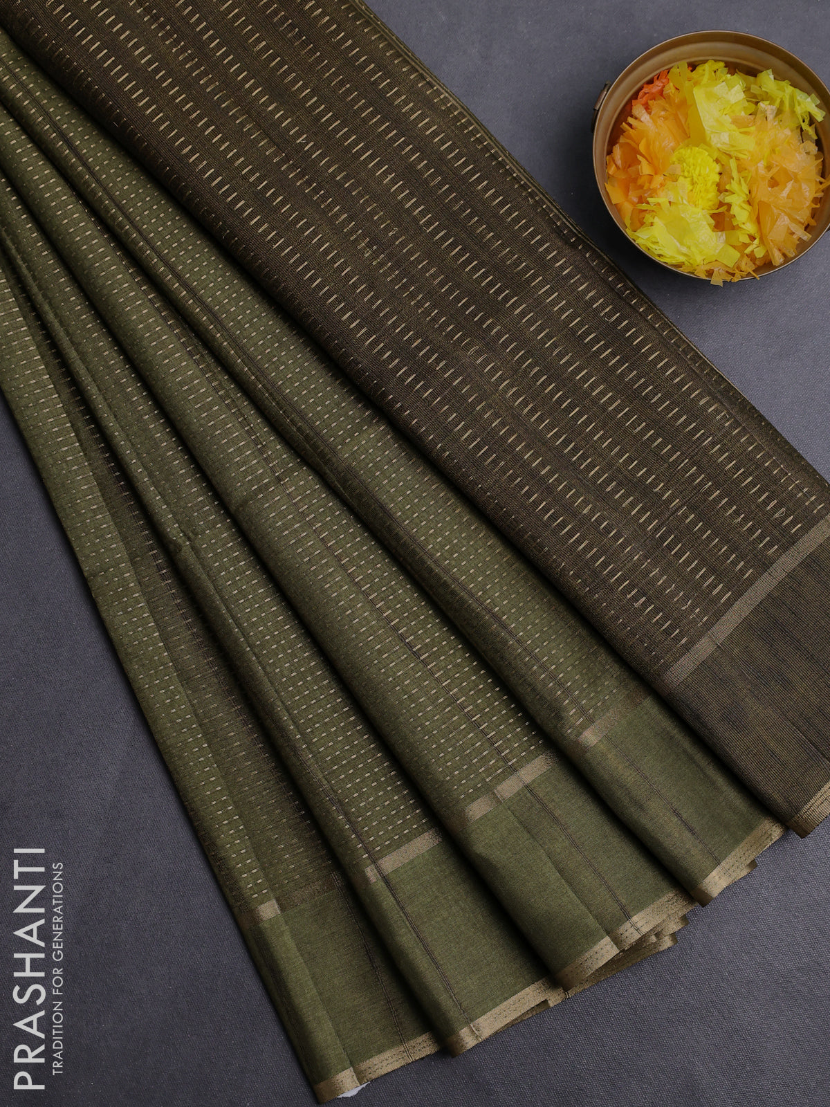 Semi matka saree sap green with allover zari weaves and rettapet zari woven border