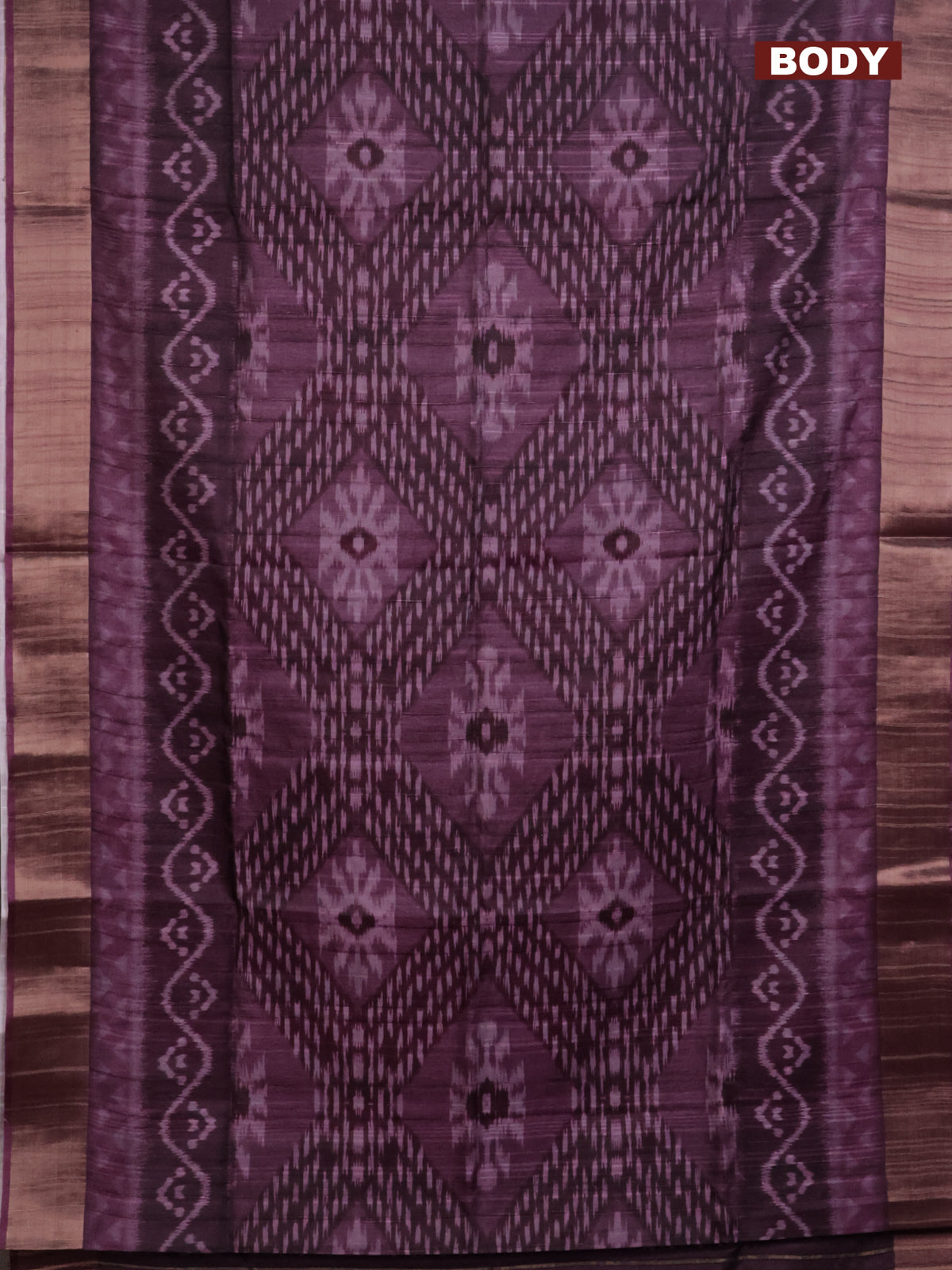 Semi matka saree wine shade with allover ikat prints and zari woven border