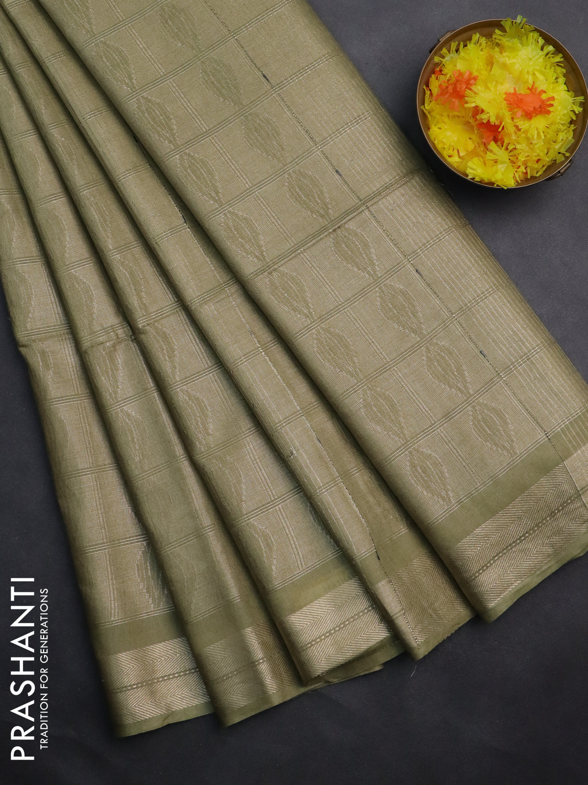 Semi munga jacquard saree green shade with allover zari weaves and zari woven border