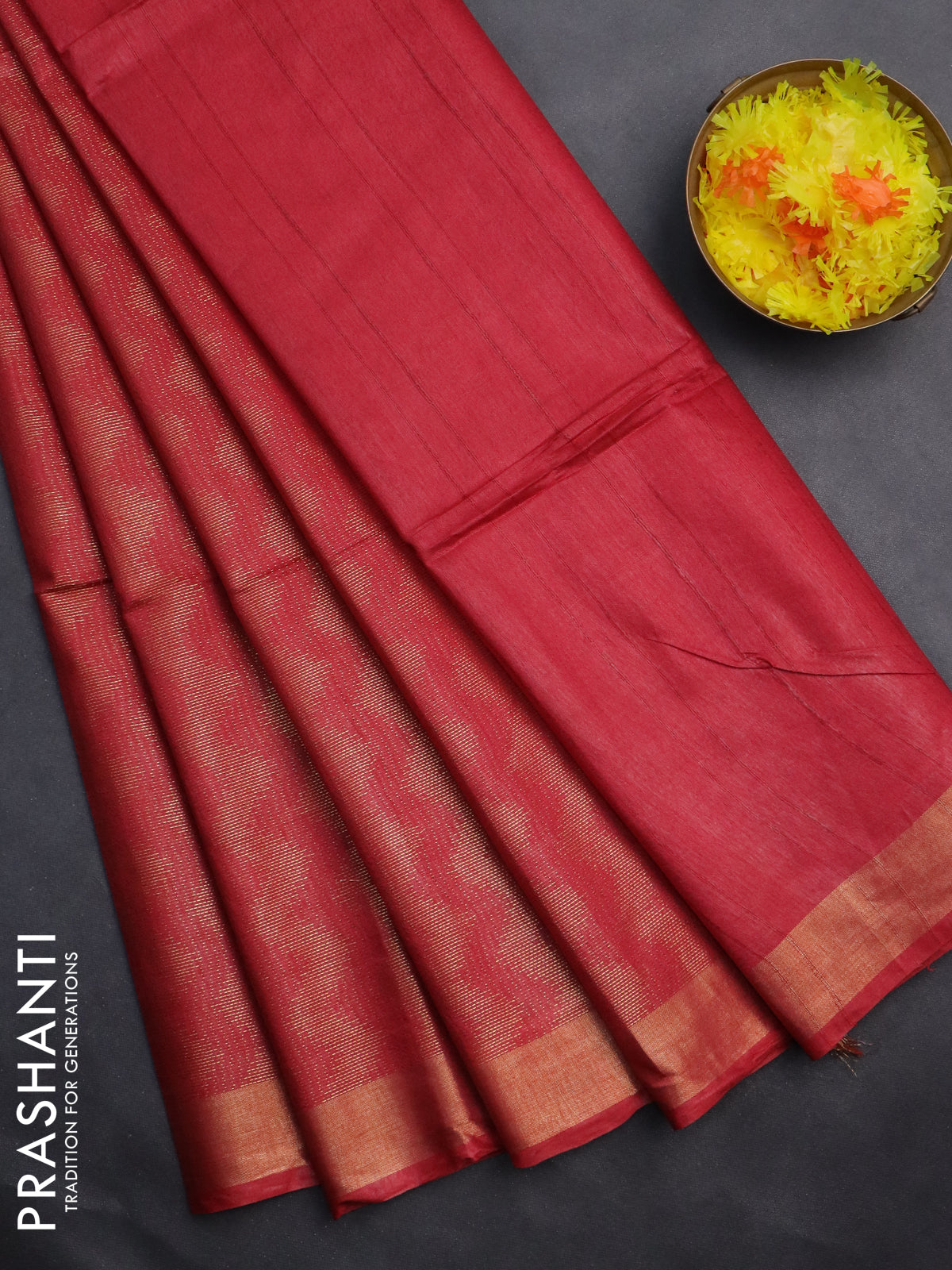 Semi munga jacquard saree red with allover zari weaves and zari woven border