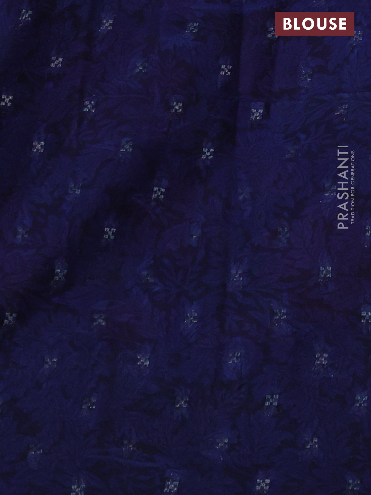 Semi mysore crepe saree blue and purple with zari weaves and long printed border