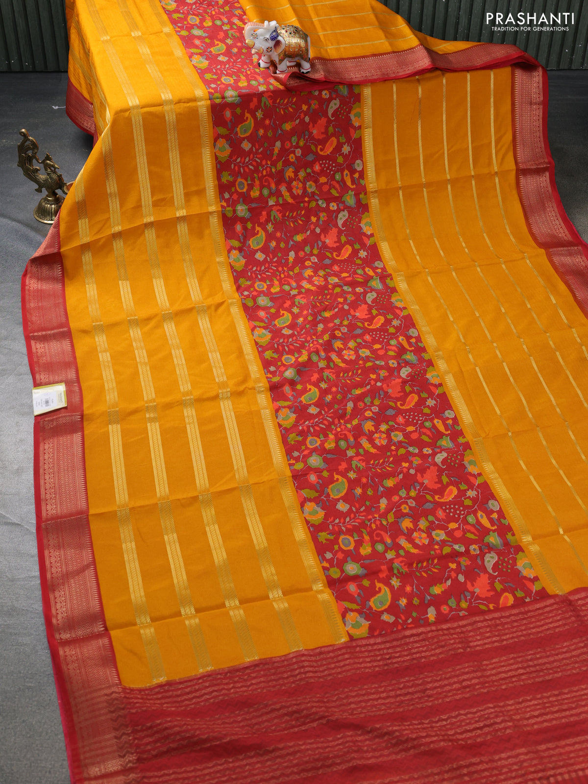 Semi mysore crepe saree maroon and mustard yellow with panel prints and long zari woven border