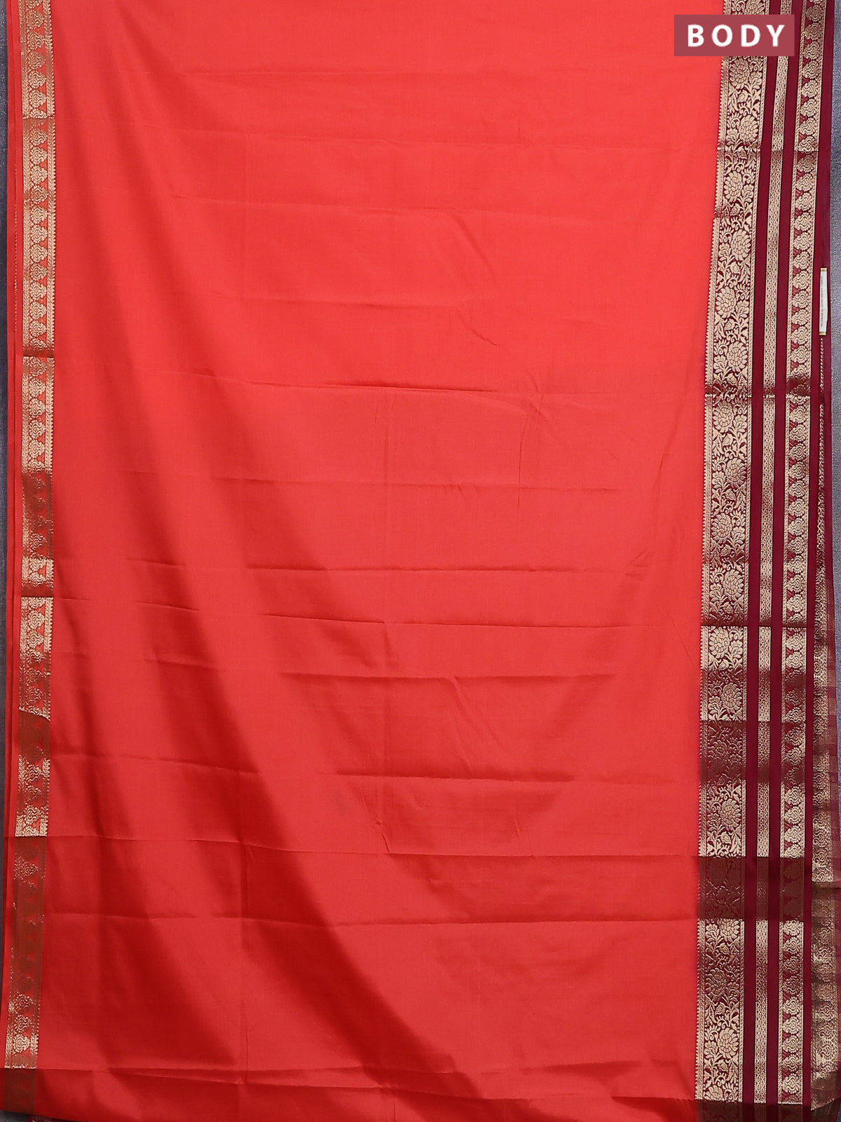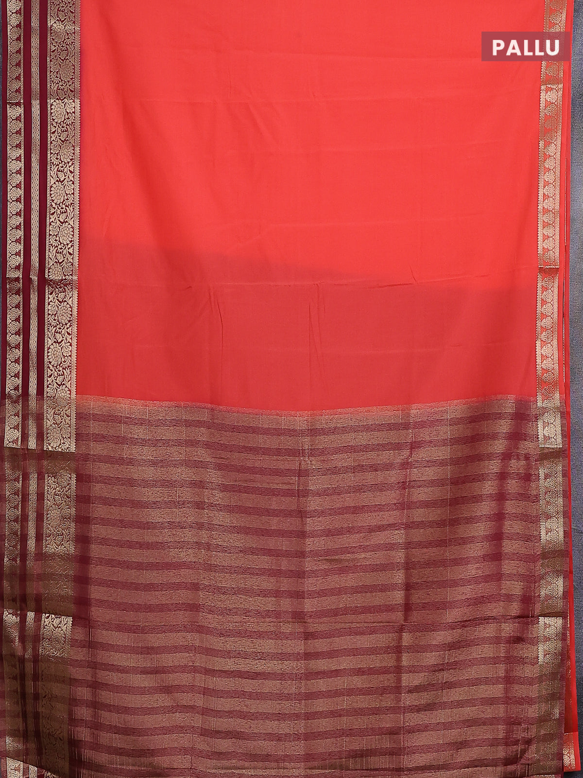 Semi mysore silk saree dark peach and deep maroon with plain body and zari woven border